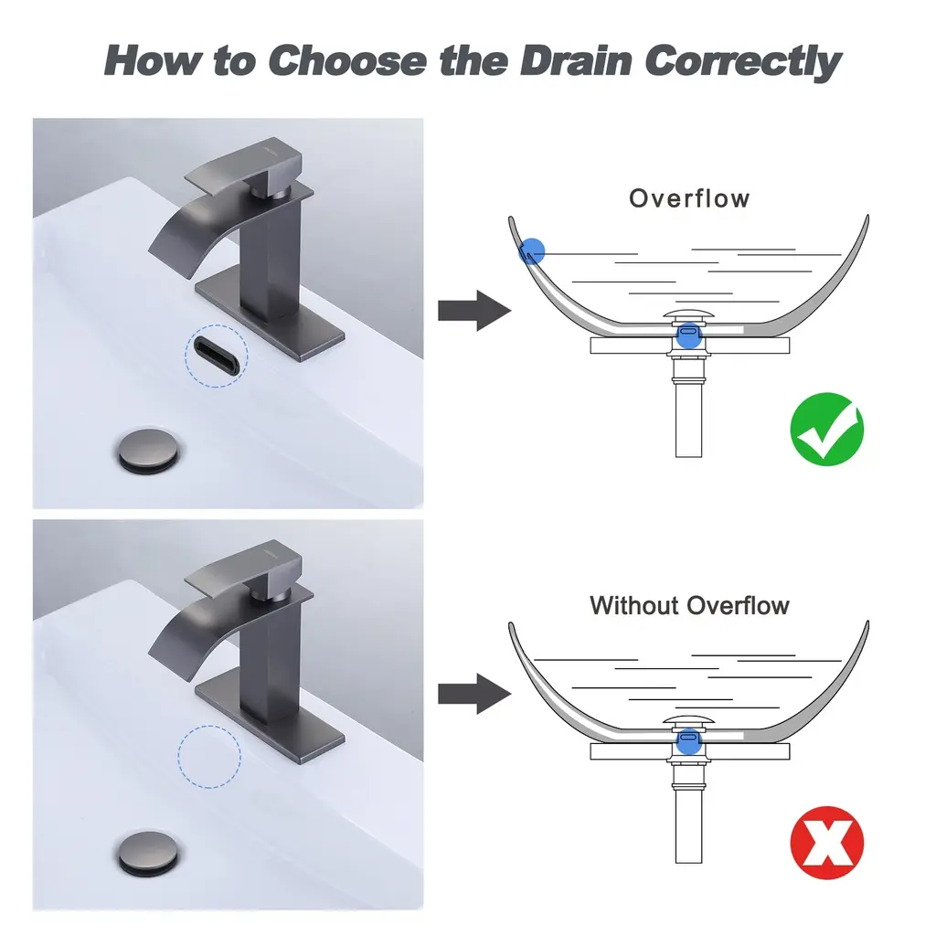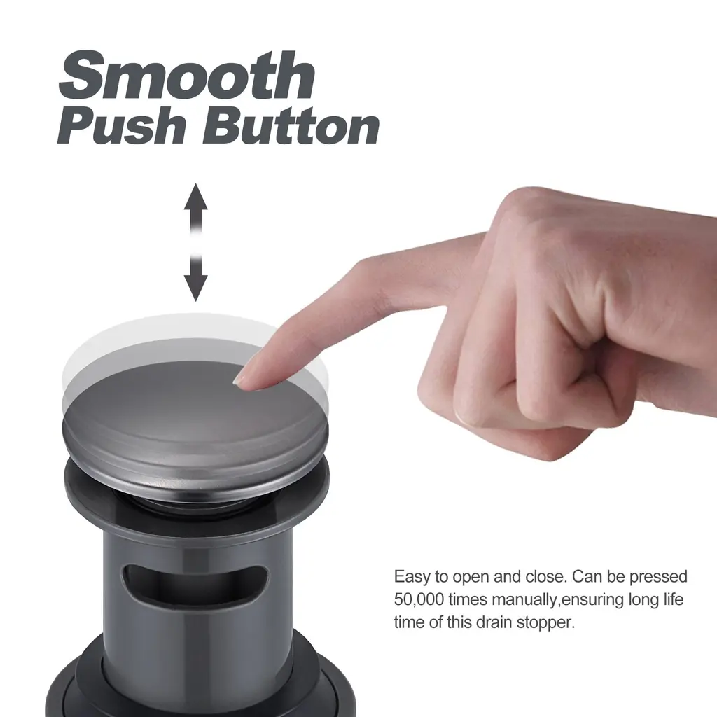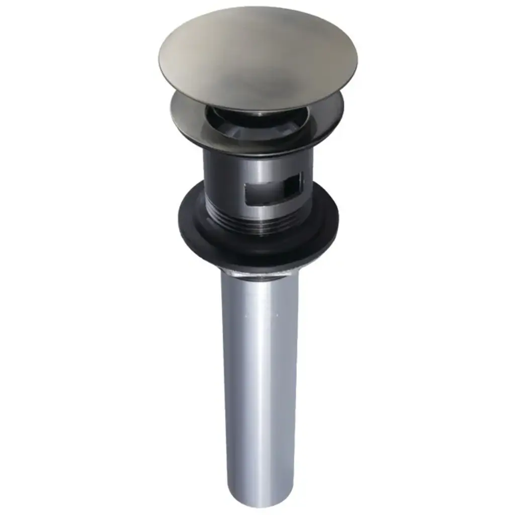 Overflow Design Wash basin with overflow hole, choose our drainer with overflow hole. Note: With overflow fits bathroom vanity sink with a drain hole diameter of 1-1/2 in. or 1-3/4 in. Detail Size Diameter of the Pop-Up Cap:2.2 in. Height (Pop Up Close): 8.66 in. Height (Pop Up Open): 9.44 in. Fits Drain Hole Size: 1/2 in. - 1 3/4'' Max. Thickness: 1.9"Feature: