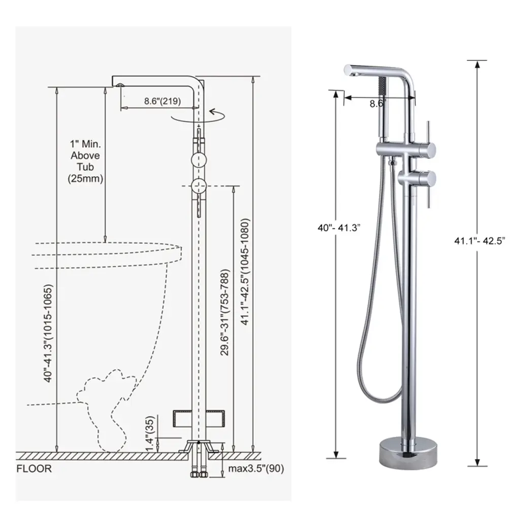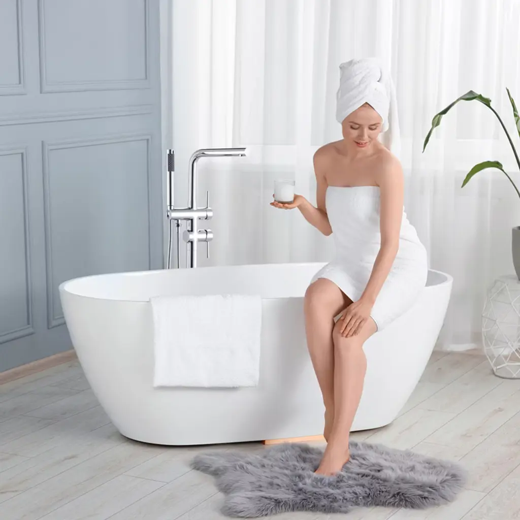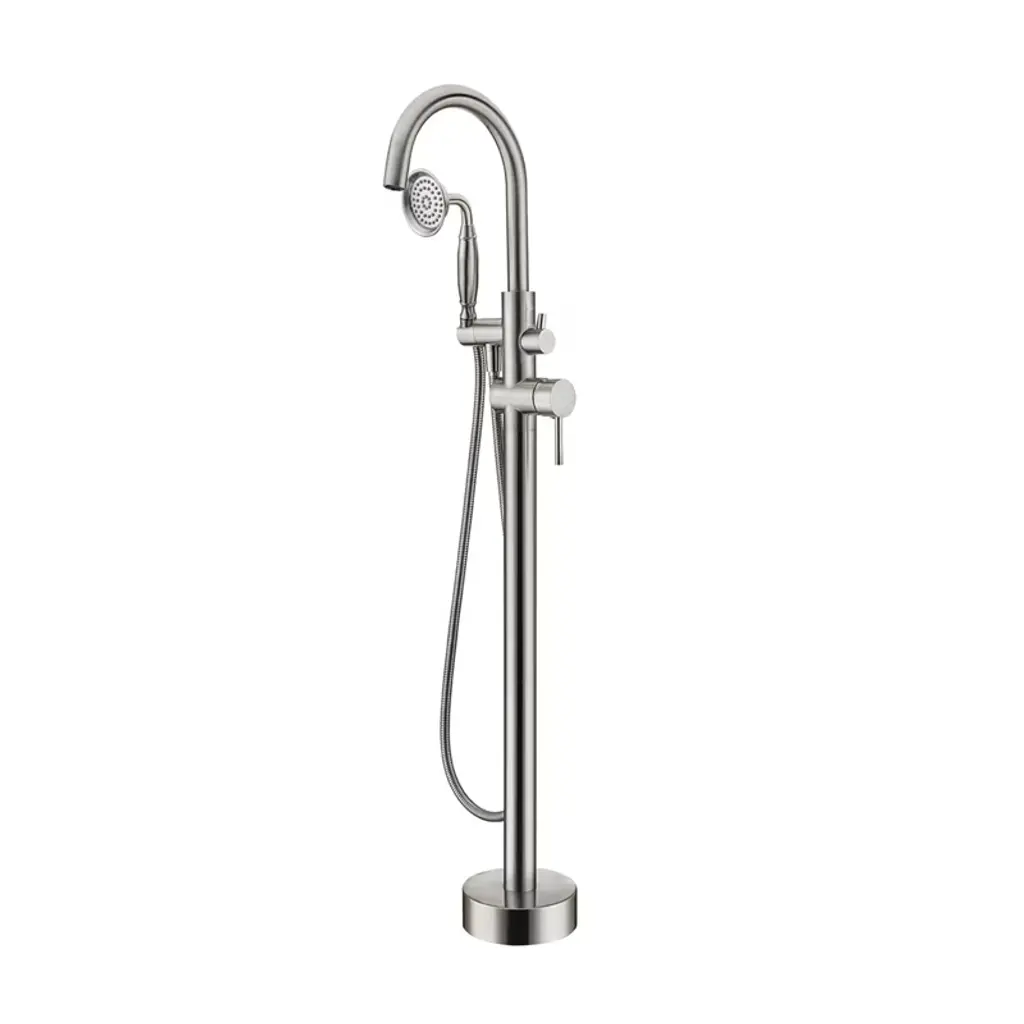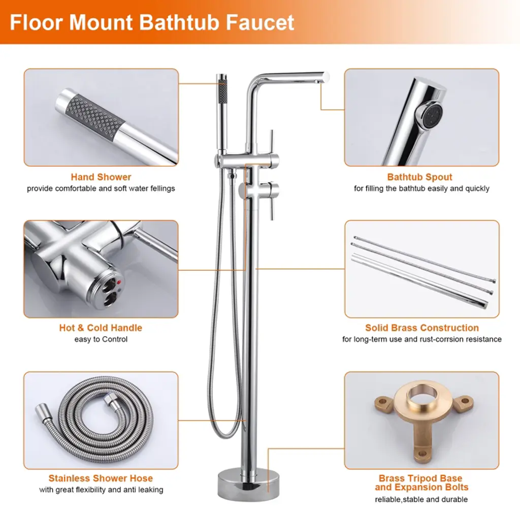 This bathtub faucet features floor mounting and is of the highest quality, bringing luxury and convenience to your bathroom. It is made of top quality brass that is both strong and durable, yet warm and lustrous. Its base is sturdy and flexible, allowing you to adjust its position as needed. The reinforced design ensures stability and will not wobble. The high pressure spout caters for full-body immersion or partial rinsing, allowing you to enjoy your bath to the fullest.