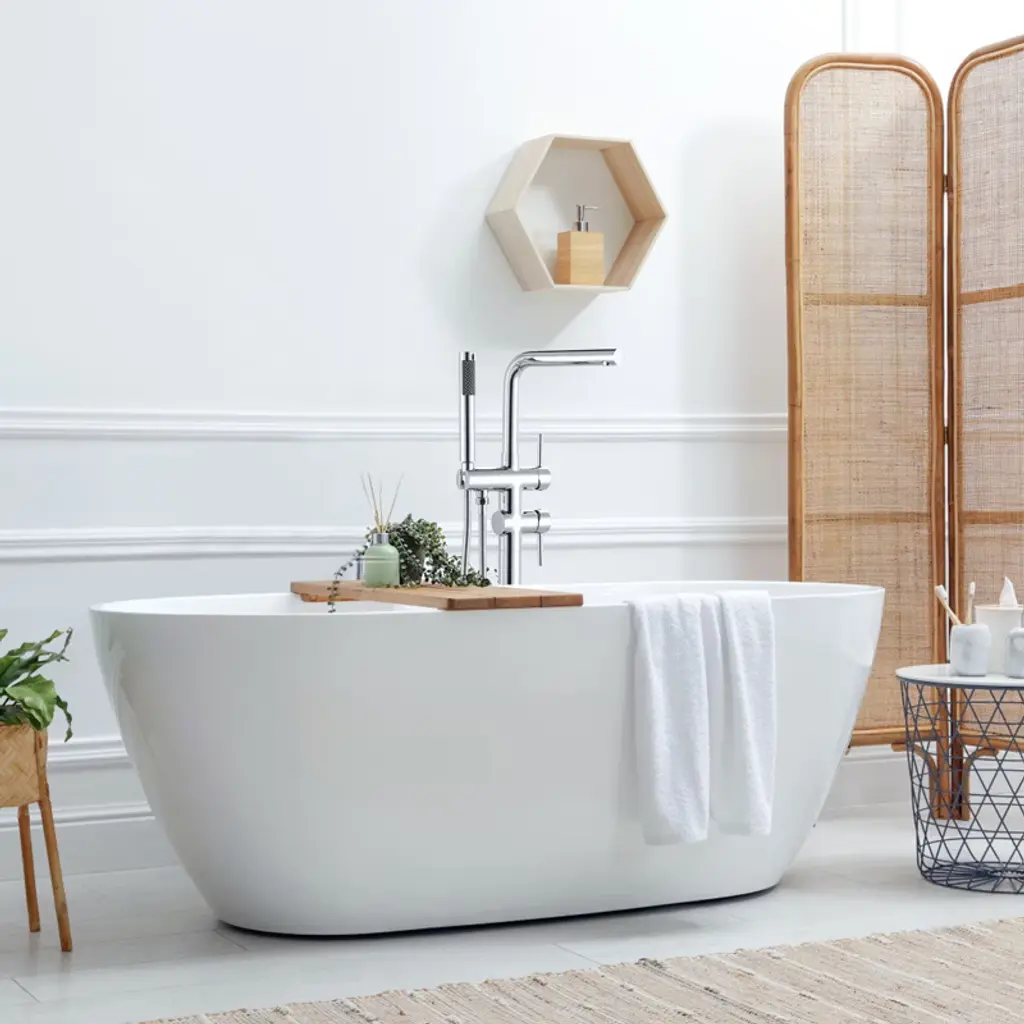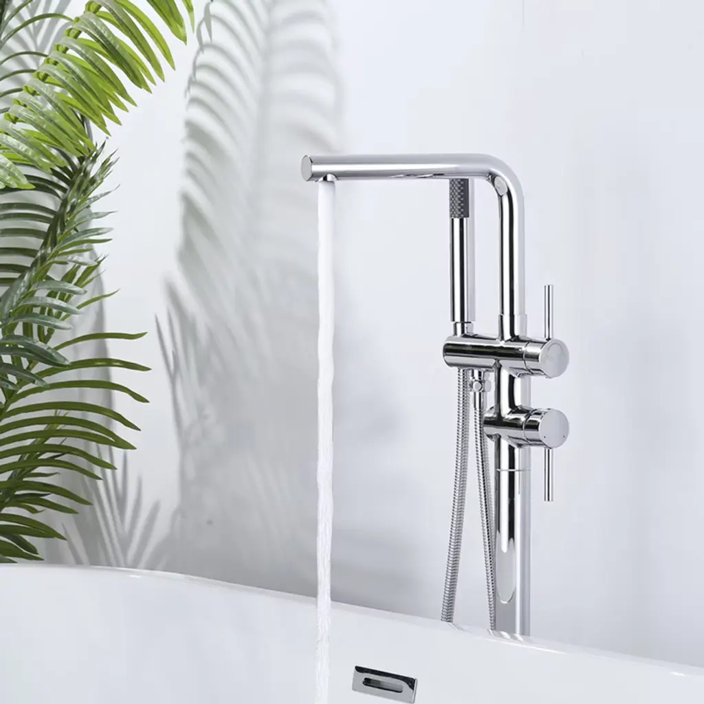 Wowow 2-handle Freestanding Tub Faucet With Handshower And Longer Spout In Chrome