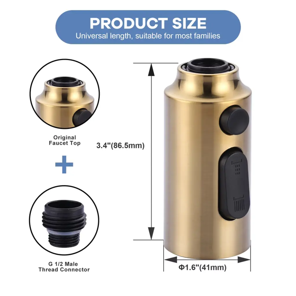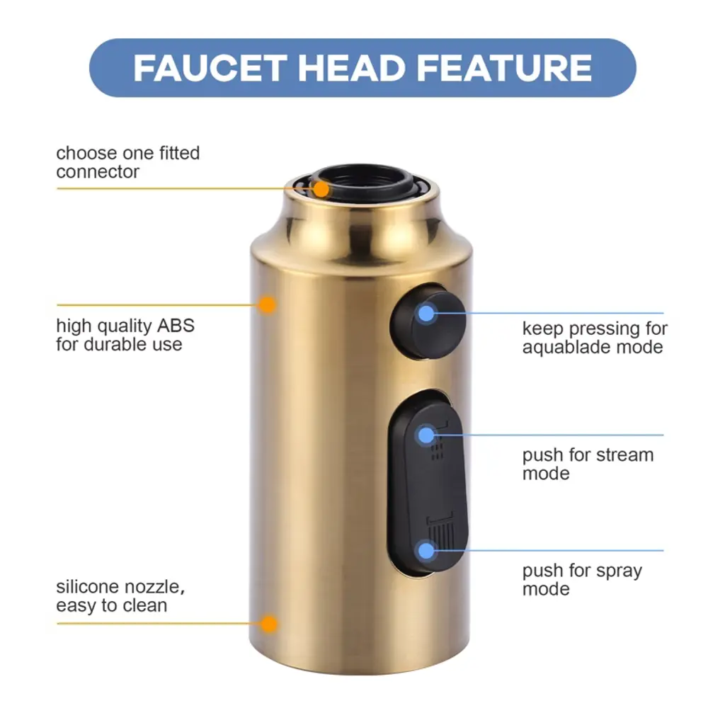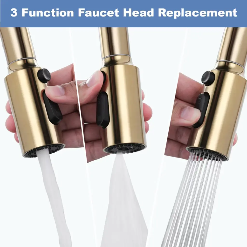Wowow 3-function Kitchen Faucet Spray Head Replacement In Brushed Gold