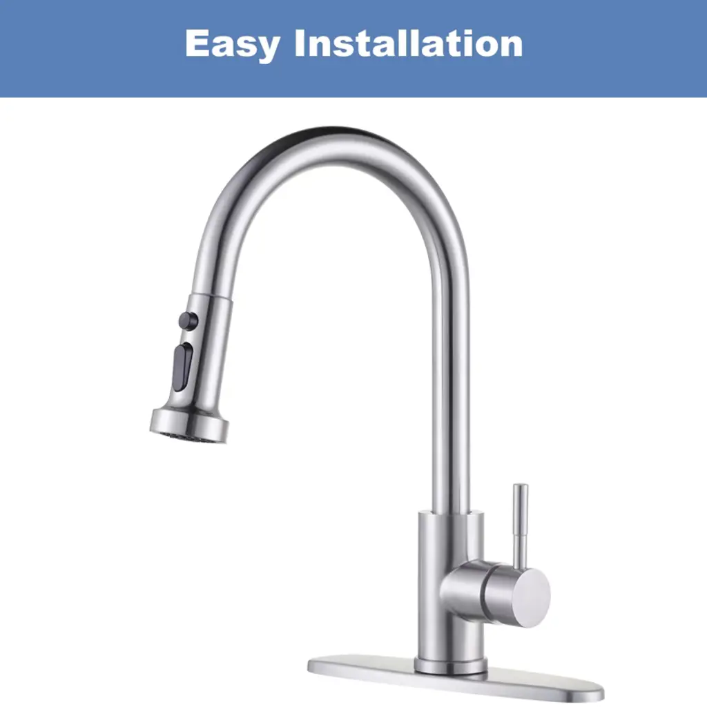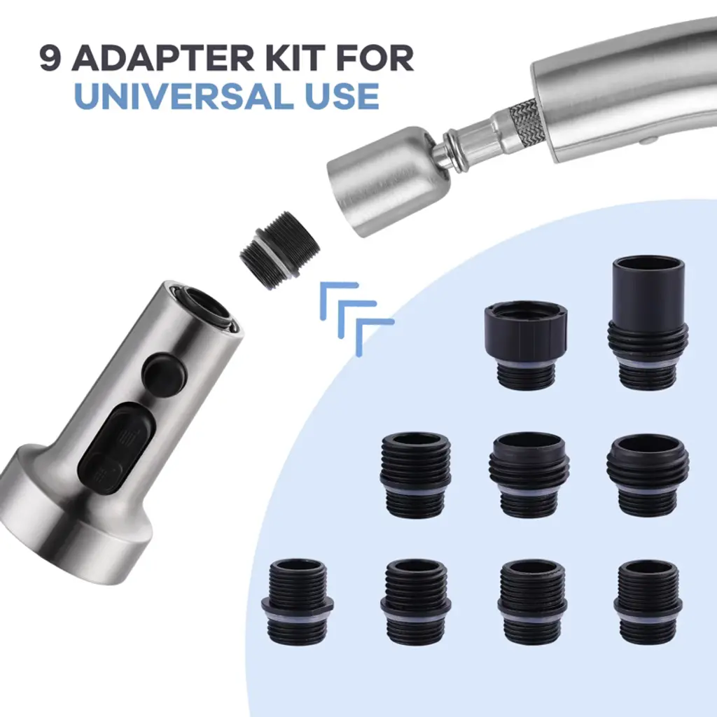 Wowow 3 Function Kitchen Faucets Head Replacement With 9-adapters In Brushed Nickel