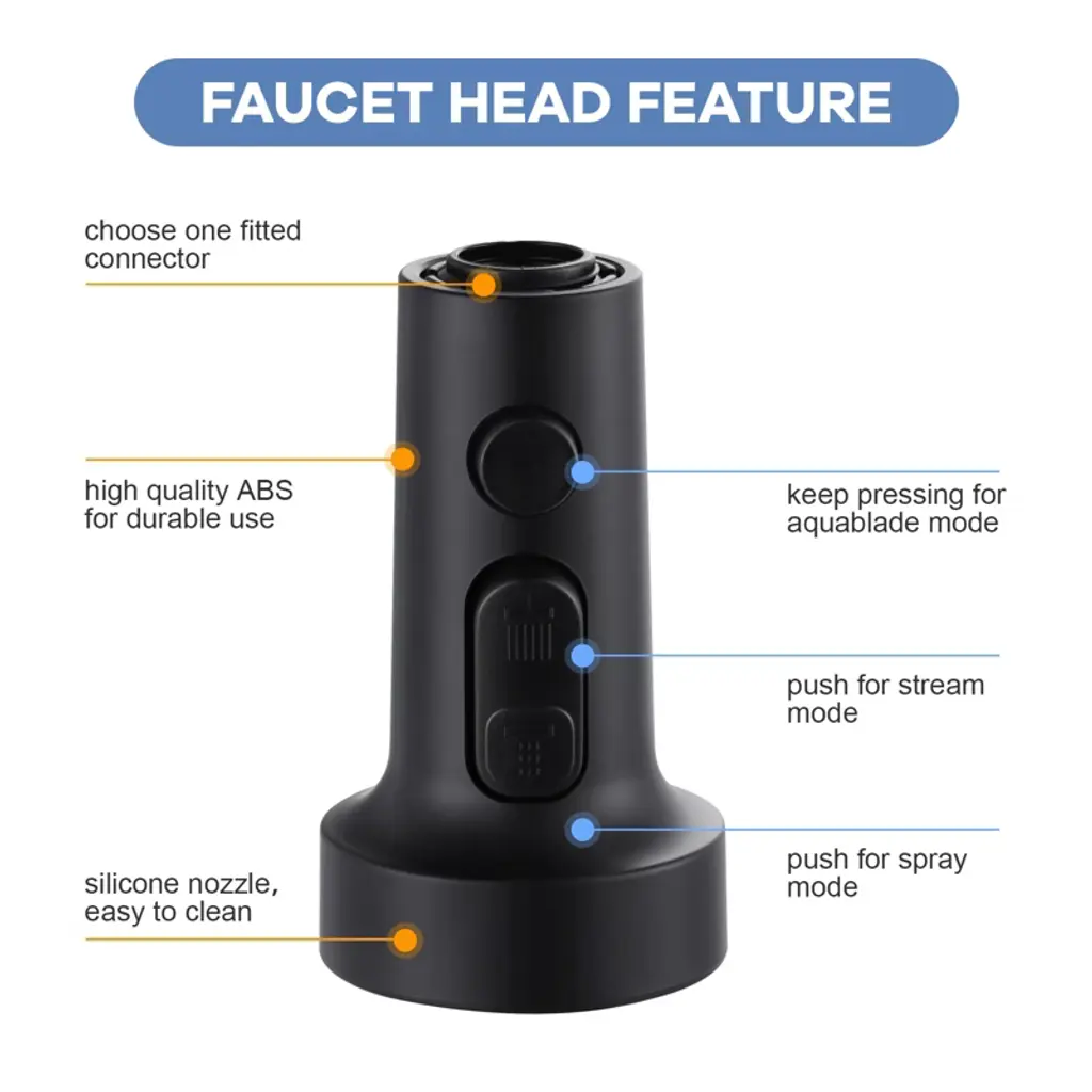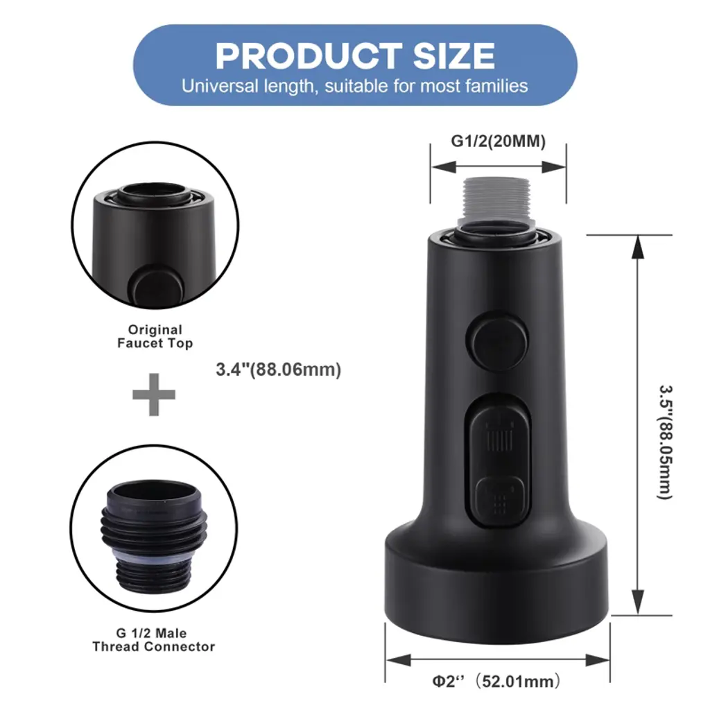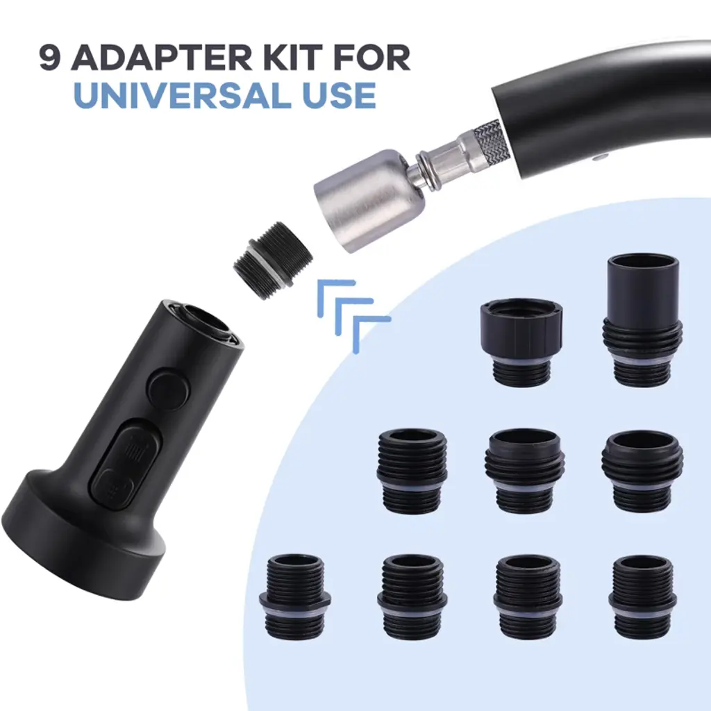 Wowow 3 Function Kitchen Faucets Head Replacement With 9-adapters In Matte Black