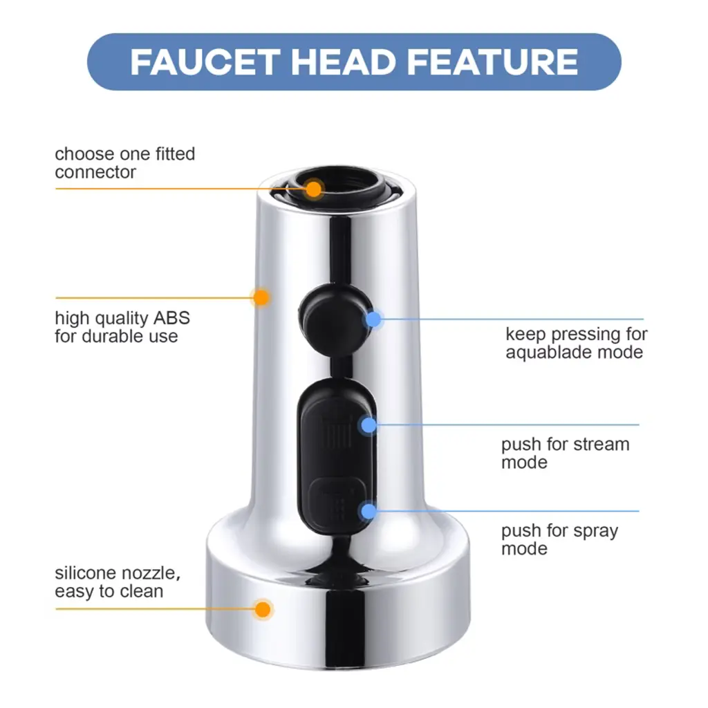 Introducing our versatile kitchen sprayer designed for durability and reliability. Made with high-quality materials, its sturdy construction prevents rust. With 3-spray patterns-stream, spray and aqua blade-you can effortlessly switch between tasks like rinsing dishes or filling pots. It comes with 9-adapters, the silicone nozzles are easy to clean, and the fine mesh aerator prevents splashing, shaping the water stream. Our versatile kitchen sprayer is easy to install with no specialized tools required.