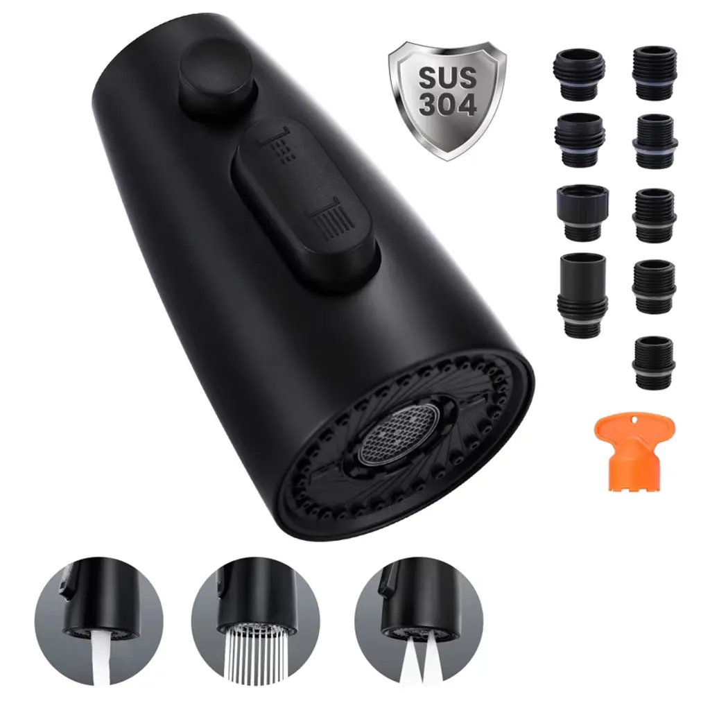 Wowow 3 Function Kitchen Faucets Head Replacement With 9-adapters In Polished Chrome