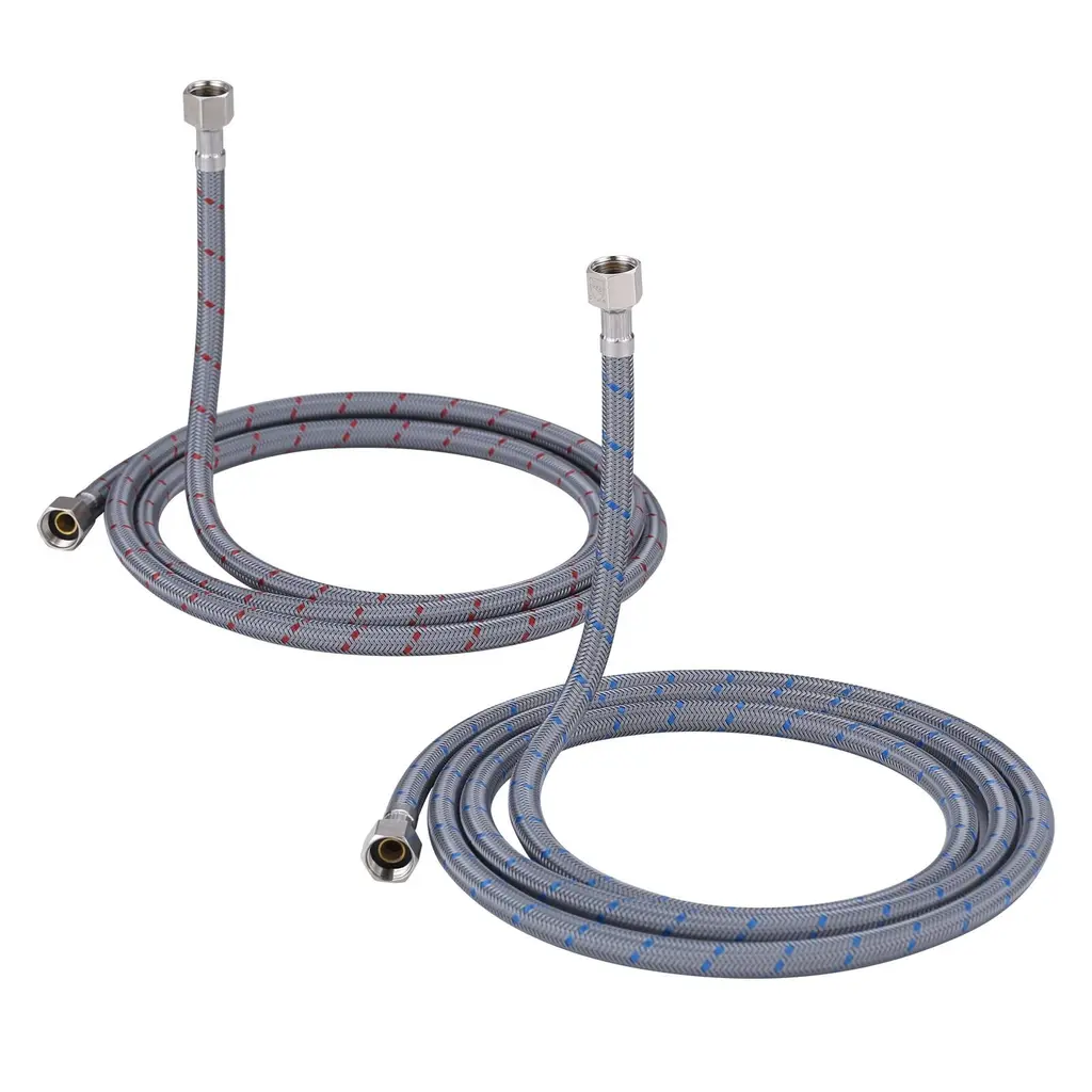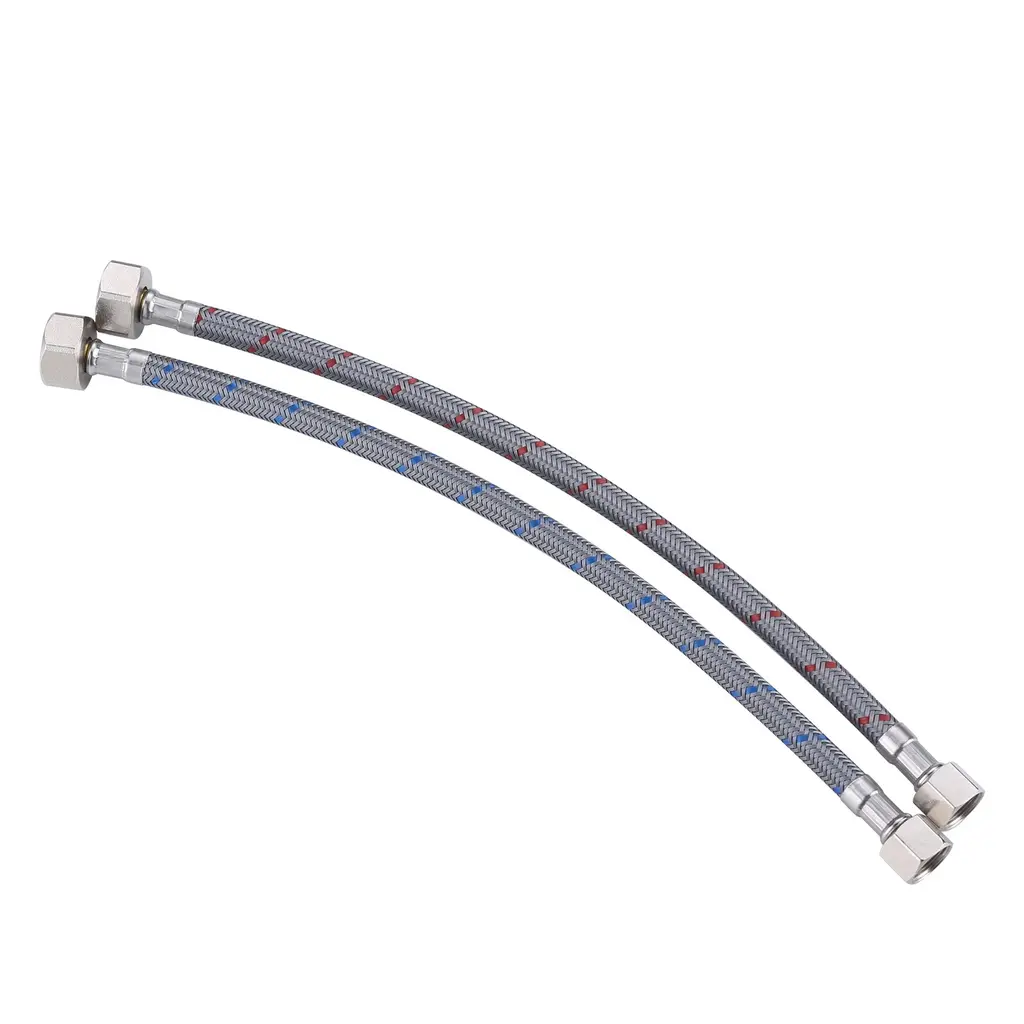 Feature 3/8 in. Female compression and 1/2 in. metal material nut, compatible with most Standard Size faucets. The faucet hose is made of superior quality braided nylon, resistant to corrosion and rust, and protects PEX inner tube, ensures maximum pressure and performance. The water supply lines feature a sealing washer, ensure no water leakage, solid metal material connector, ensure quality and longevity.