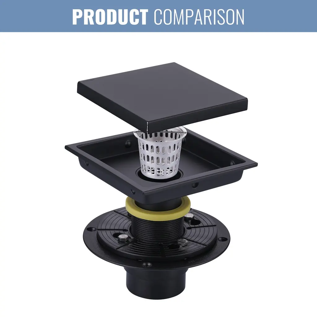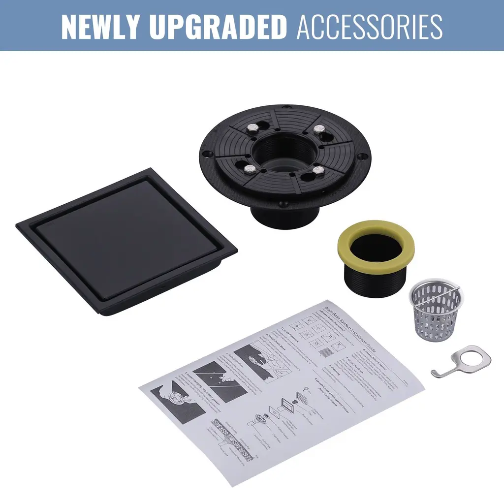 Wowow 5.9 In. X 5.9 In. Square Shower Drain With Tile-In Pattern Cover - Matte Black