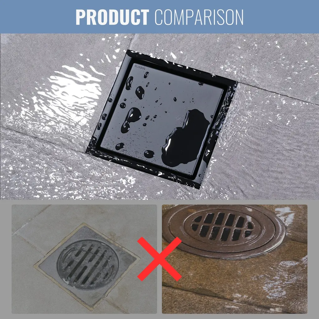 The floor drain has completely become a decoration for bathrooms, kitchens, swimming pools and other places where it is suitable. The flip face mask is embedded in the ceramic tiles to make your shower room more natural and harmonious. The surface of this floor drain adopts the process of brushed nickel, in addition to having a unique bright appearance, it can be more effective anti-rust, anti-oxidation and anti-scratch. This floor drain has a small lifting hook, which can help you quickly and easily lift the detachable lid for cleaning, so as to keep the floor drain and sewer clean, and let your bathroom and kitchen feel the fragrance every moment. This floor drain is equipped with a stainless steel filter, which can effectively capture hair and valuable small objects, such as rings, bracelets, necklaces, etc., to avoid clogging the drain pipe, allowing you to perform washing tasks with peace of mind.Feature: