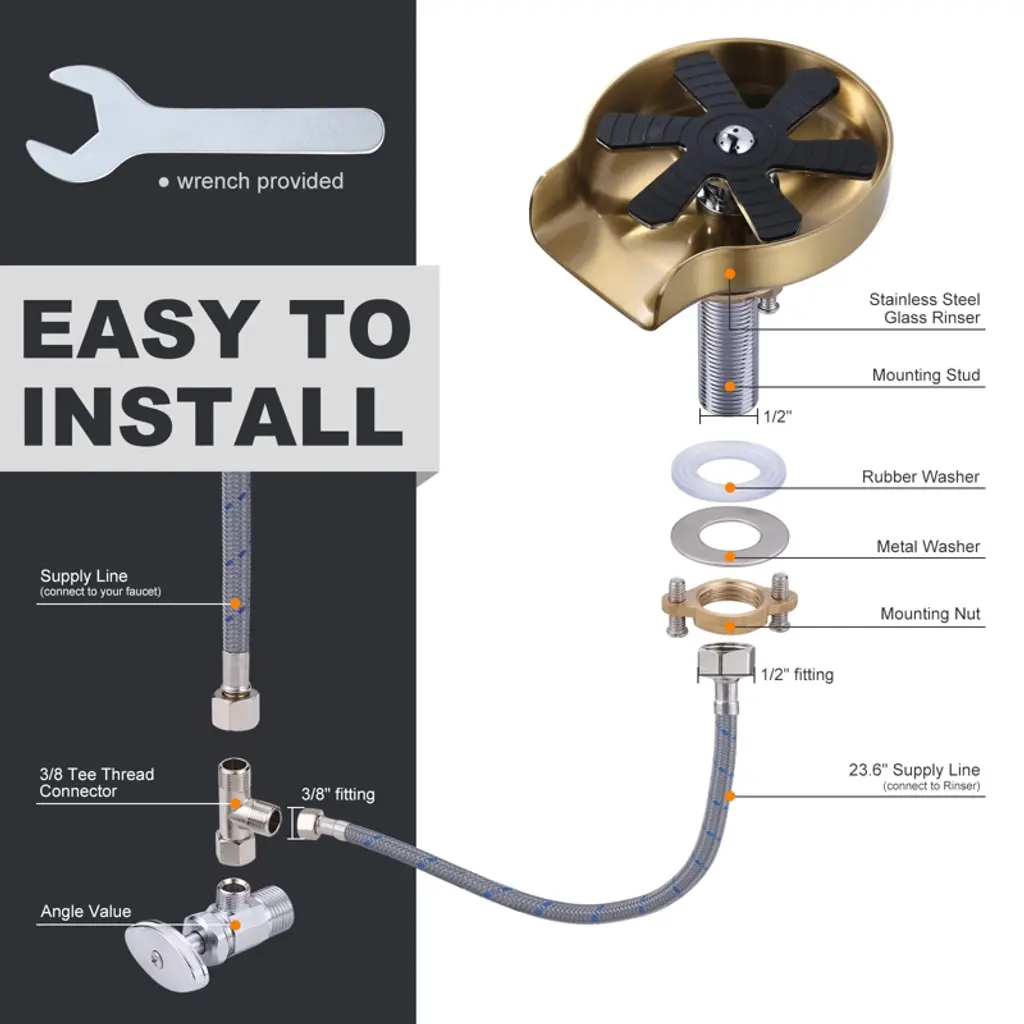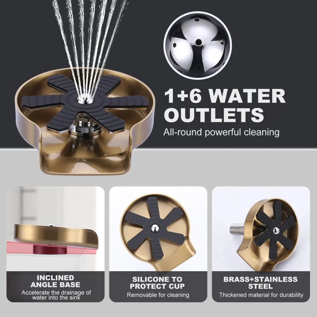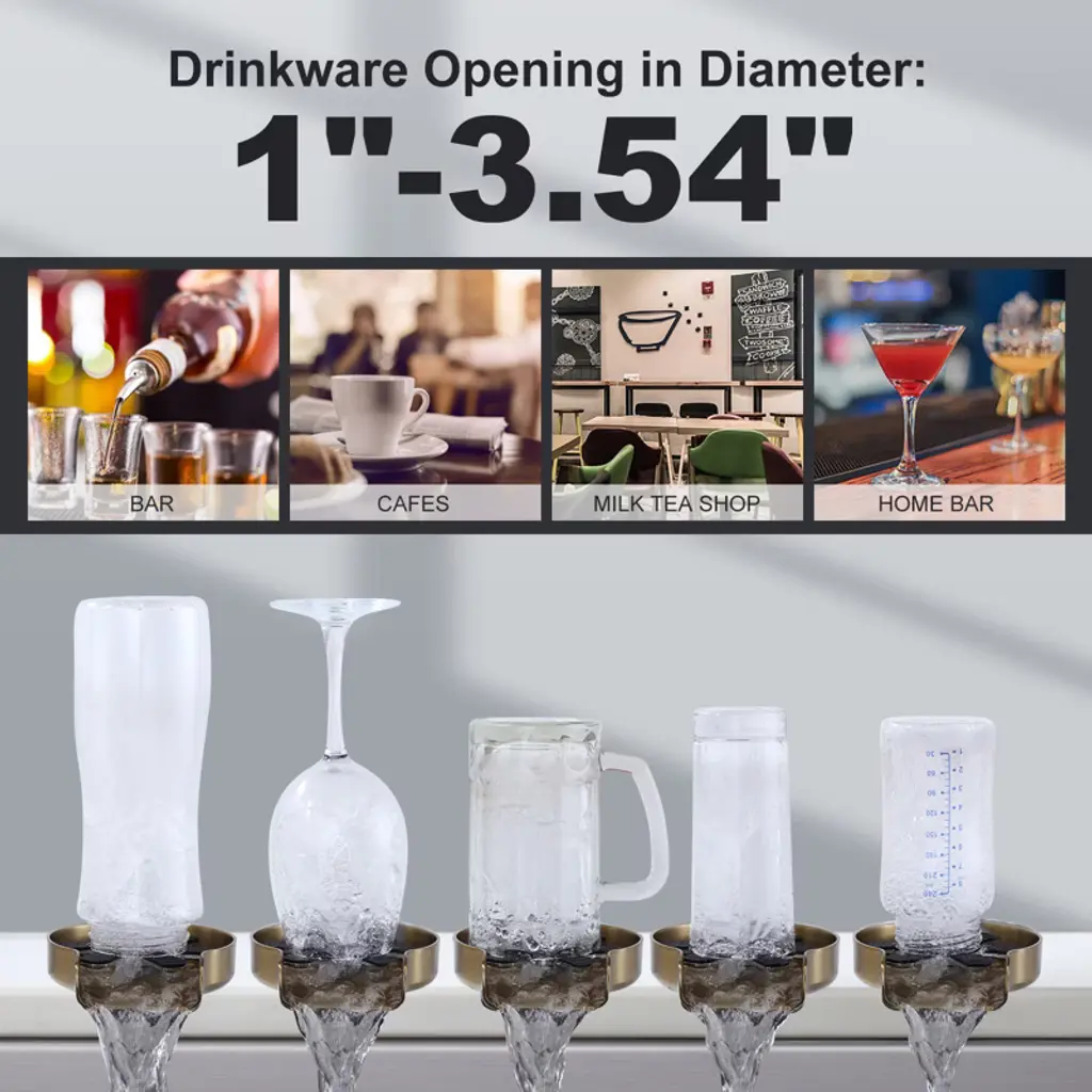 This cup washer is easy to operate, just invert the cup and lightly press the bottom to spray water to clean and stop when you remove the cup. Equipped with 7 water spraying holes to ensure comprehensive cleaning. Made of high quality stainless steel, durable and not deformed. Applicable cup diameter ≤ 3.54 inches, saving time and labor. Easy to install, with instructions and accessories.