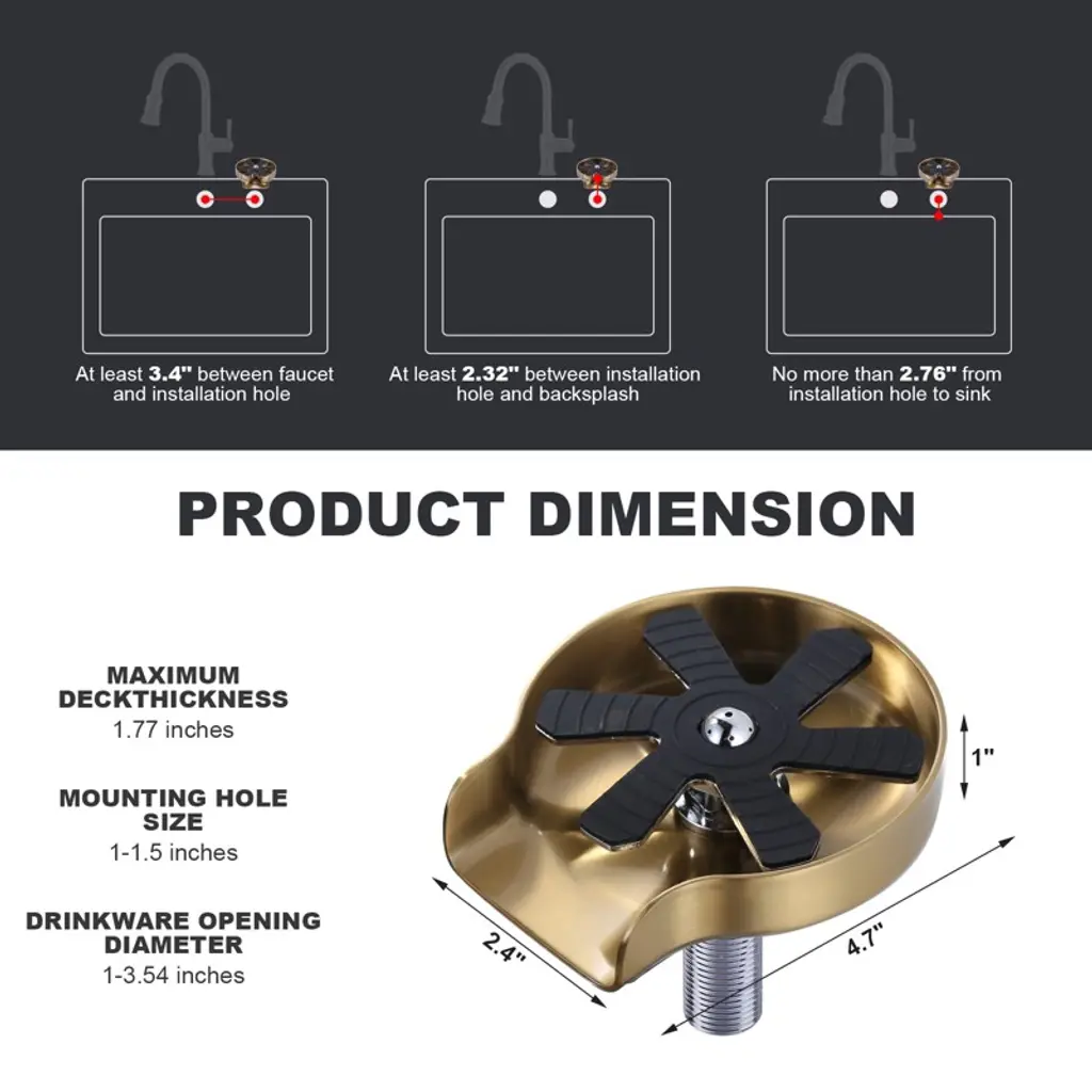 Wowow 5 In. Metal Glass Rinser For Kitchen Sinks In Brushed Gold