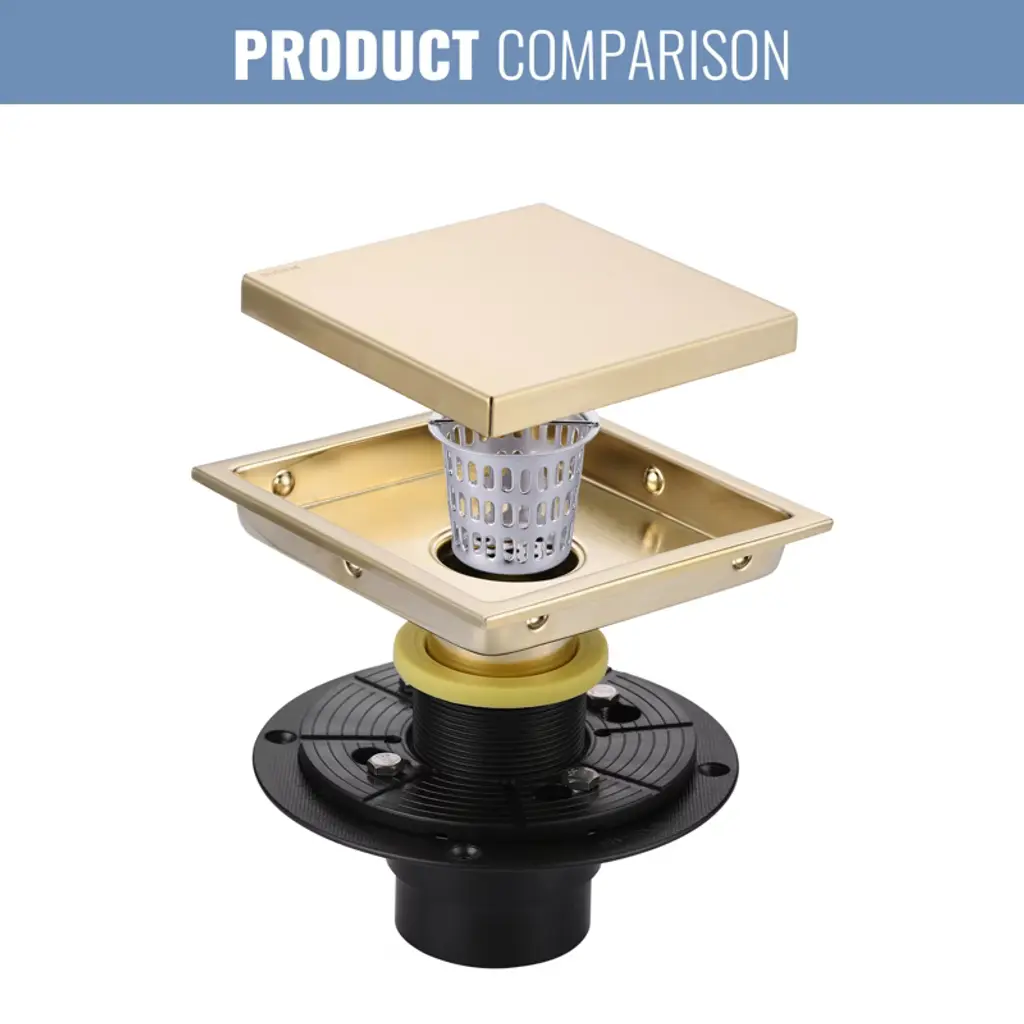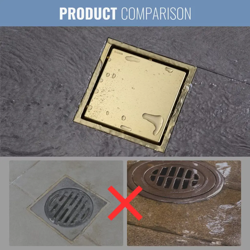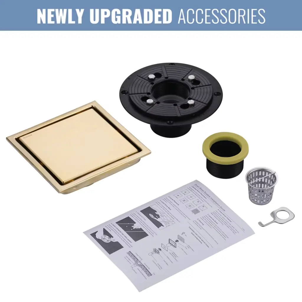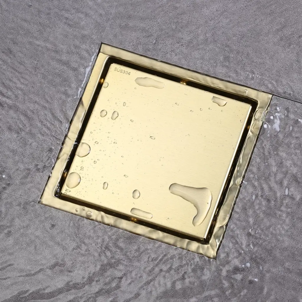 Wowow 6 In. X 6 In. Stainless Steel Square Shower Drain With Tile-in Pattern Drain Cover In Gold