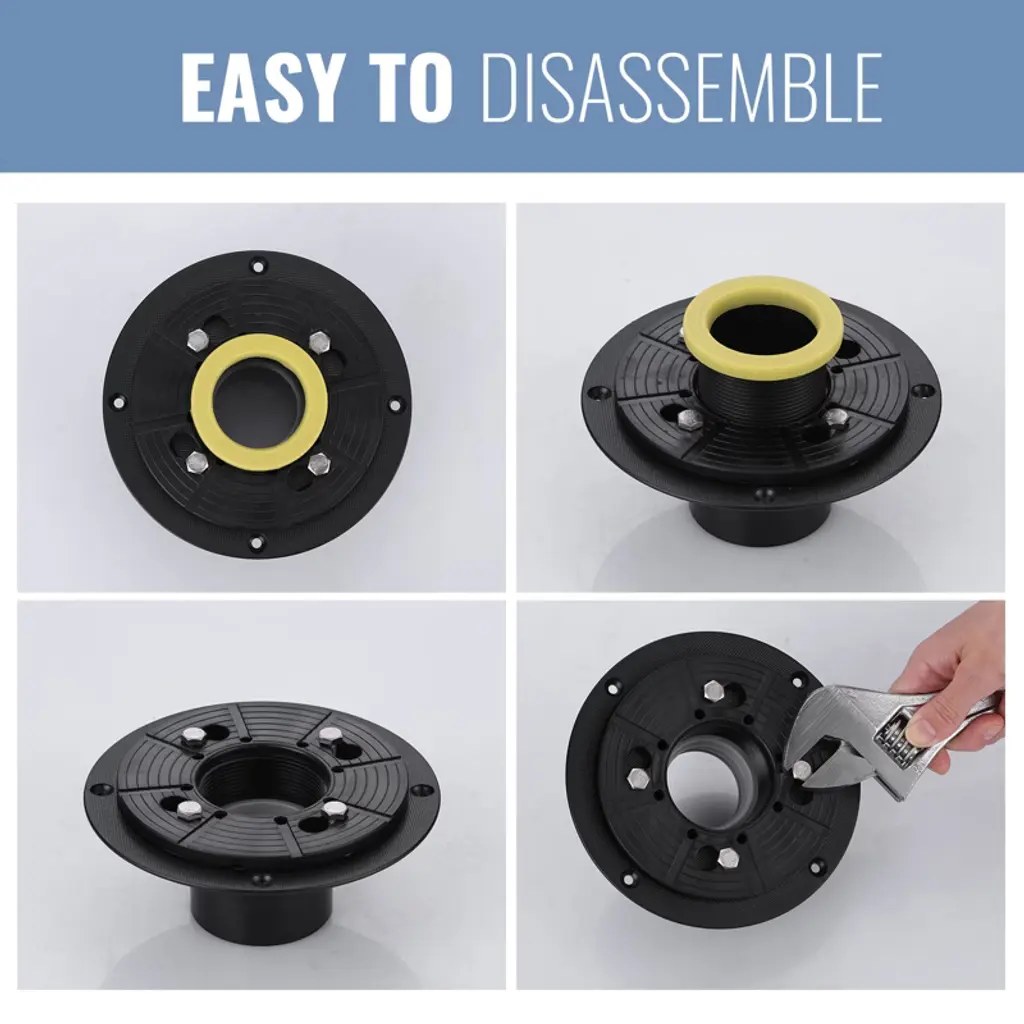 The floor drain has completely become a decoration for bathrooms, kitchens, swimming pools and other places where it is suitable. The flip face mask is embedded in the ceramic tiles to make your shower room more natural and harmonious. The surface of this floor drain adopts the process of brushed nickel, in addition to having a unique bright appearance, it can be more effective anti-rust, anti-oxidation and anti-scratch. This floor drain has a small lifting hook, which can help you quickly and easily lift the detachable lid for cleaning, so as to keep the floor drain and sewer clean, and let your bathroom and kitchen feel the fragrance every moment. This floor drain is equipped with a stainless steel filter, which can effectively capture hair and valuable small objects, such as rings, bracelets, necklaces, etc., to avoid clogging the drain pipe, allowing you to perform washing tasks with peace of mind.