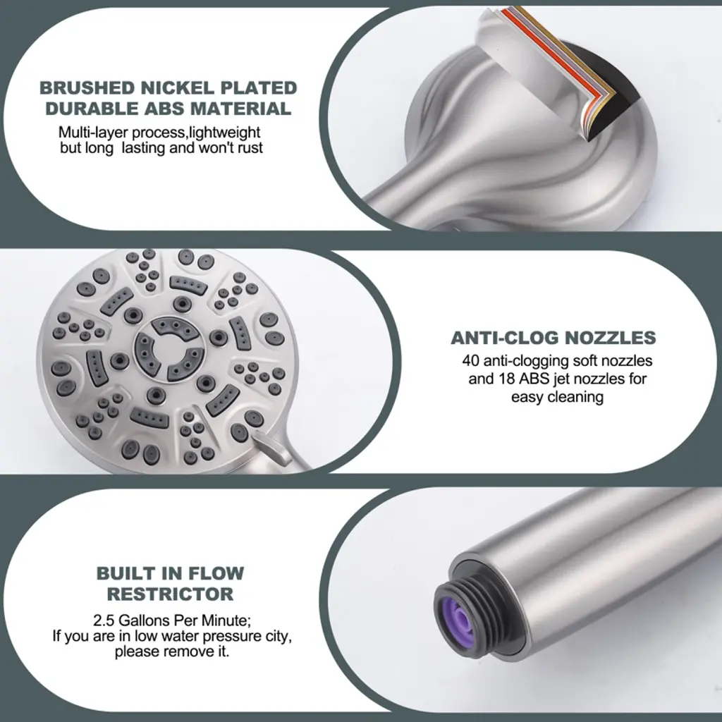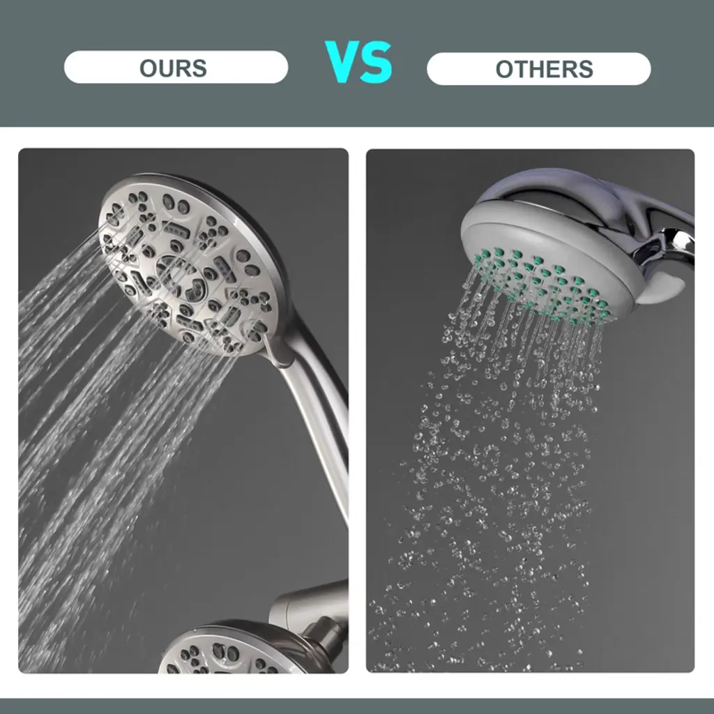 The pause setting gives you ample space for shaving, lathering and other shower tasks.And helps you conserve water, so you don't worry about depleting your supply of hot water. You can definitely find an optimal showering angle no matter what your height is.It is easy to operation and stable. Higher or lower? No problem! It can rotate for 360° to customize the spray direction so as to provide an optimal experience for you.When your shower space is limited or special, just leave it to us.