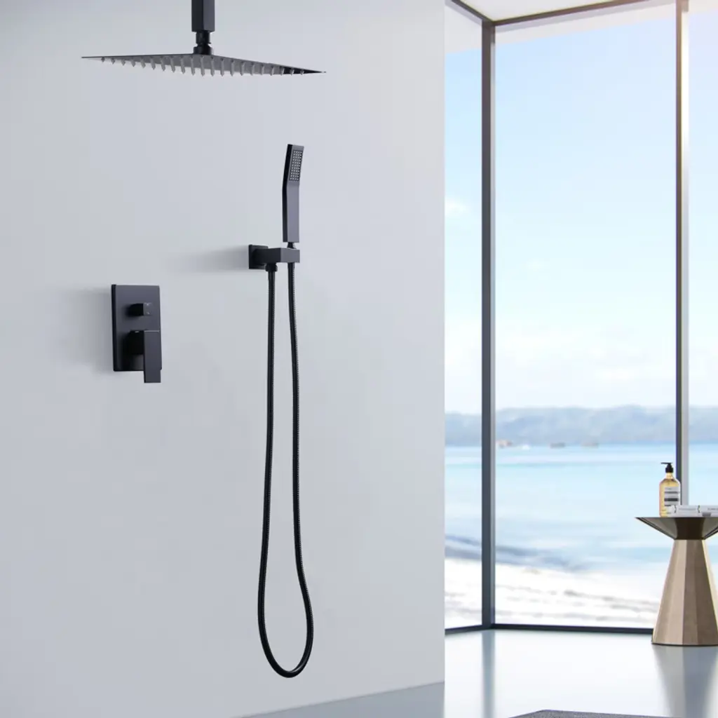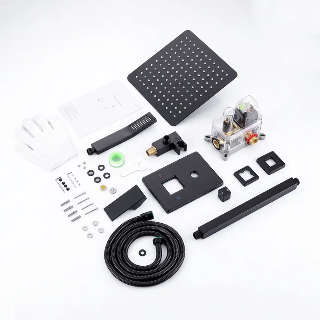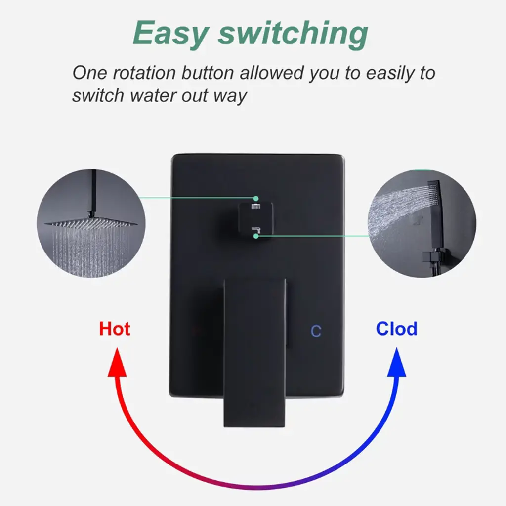 Indulge in the ultimate essence of relaxation with this Complete Shower System, an ideal complement to any contemporary bathroom setting. This shower faucet set includes a 10" ceiling-mounted rainfall showerhead and a flexible 70" handheld for personalized comfort. This shower head and handle set boasts a solid, all-metal construction. The mixing valve is crafted from solid brass, and the multi-layer plating ensures no rust and a long lifespan, providing durability in even the most humid environments. The shower top spray rotates 360 degrees, and the 304 stainless steel rain head with silicone nozzles easily wipes away mineral deposits.
