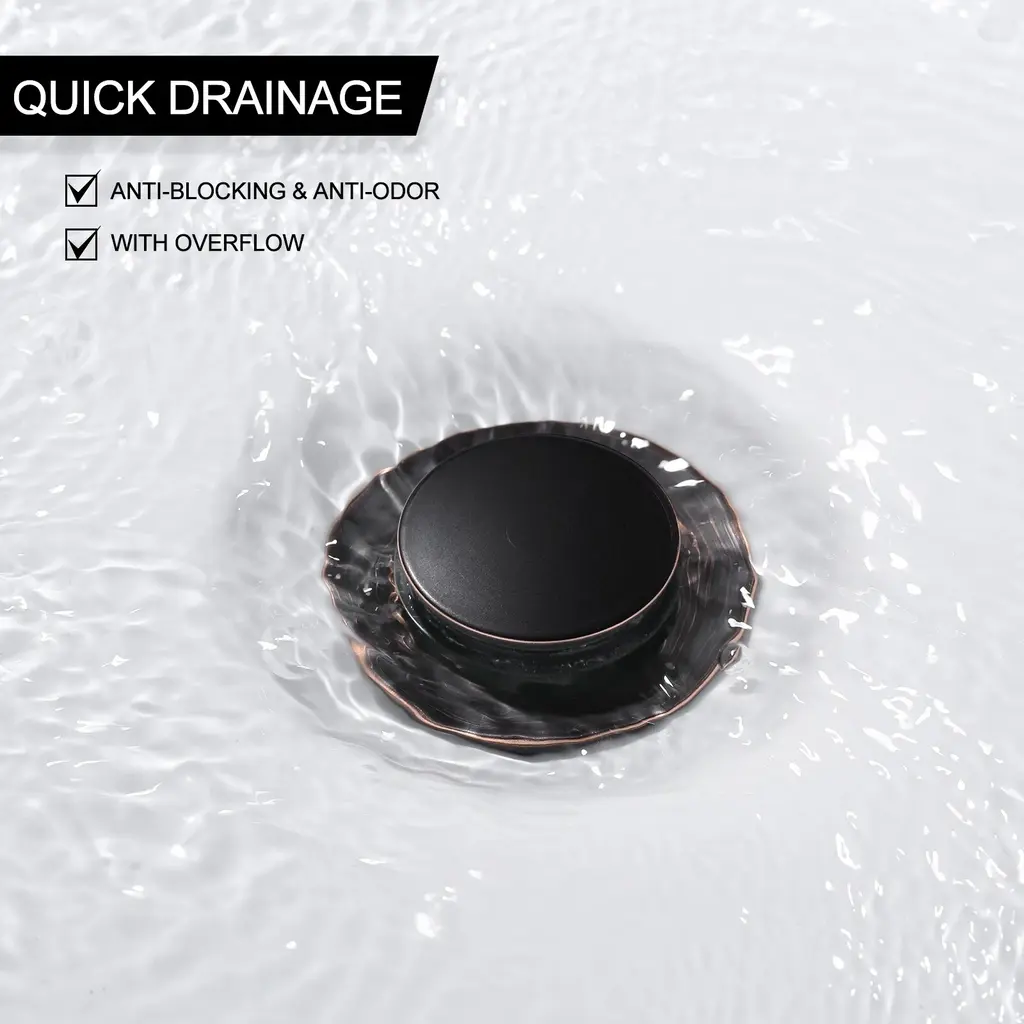 This bathroom sink drain assembly is versatile and user-friendly, ideal for sinks equipped with an overflow. Its spring-loaded push-button design allows effortless sealing and opening with a simple press. Crafted from durable ABS material, it ensures longevity and reliable performance over time. Featuring multi-layer leakage prevention with high-quality silicone gaskets, it securely fits vessel, basin and undermount sinks, effectively preventing water leakage without the need for adhesive. Installation is quick and straightforward with detailed instructions provided, ensuring a hassle-free setup process.Highlights
