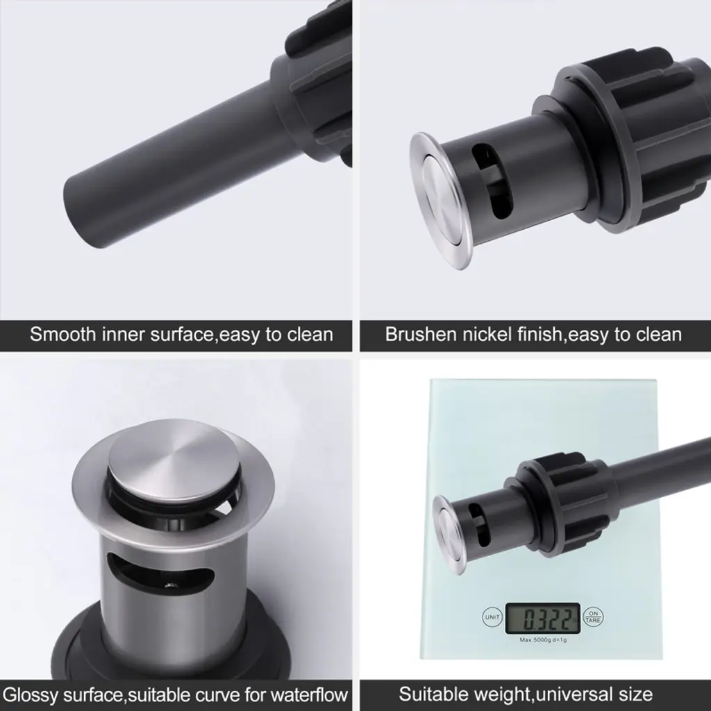 This bathroom sink drain assembly is versatile and user-friendly, ideal for sinks equipped with an overflow. Its spring-loaded push-button design allows effortless sealing and opening with a simple press. Crafted from durable ABS material, it ensures longevity and reliable performance over time. Featuring multi-layer leakage prevention with high-quality silicone gaskets, it securely fits vessel, basin and undermount sinks, effectively preventing water leakage without the need for adhesive. Installation is quick and straightforward with detailed instructions provided, ensuring a hassle-free setup process.