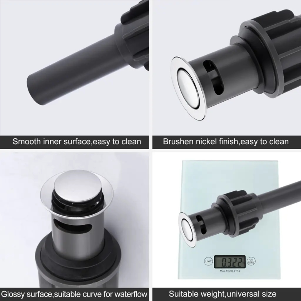 This bathroom sink drain assembly is versatile and user-friendly, ideal for sinks equipped with an overflow. Its spring-loaded push-button design allows effortless sealing and opening with a simple press. Crafted from durable ABS material, it ensures longevity and reliable performance over time. Featuring multi-layer leakage prevention with high-quality silicone gaskets, it securely fits vessel, basin and undermount sinks, effectively preventing water leakage without the need for adhesive. Installation is quick and straightforward with detailed instructions provided, ensuring a hassle-free setup process.