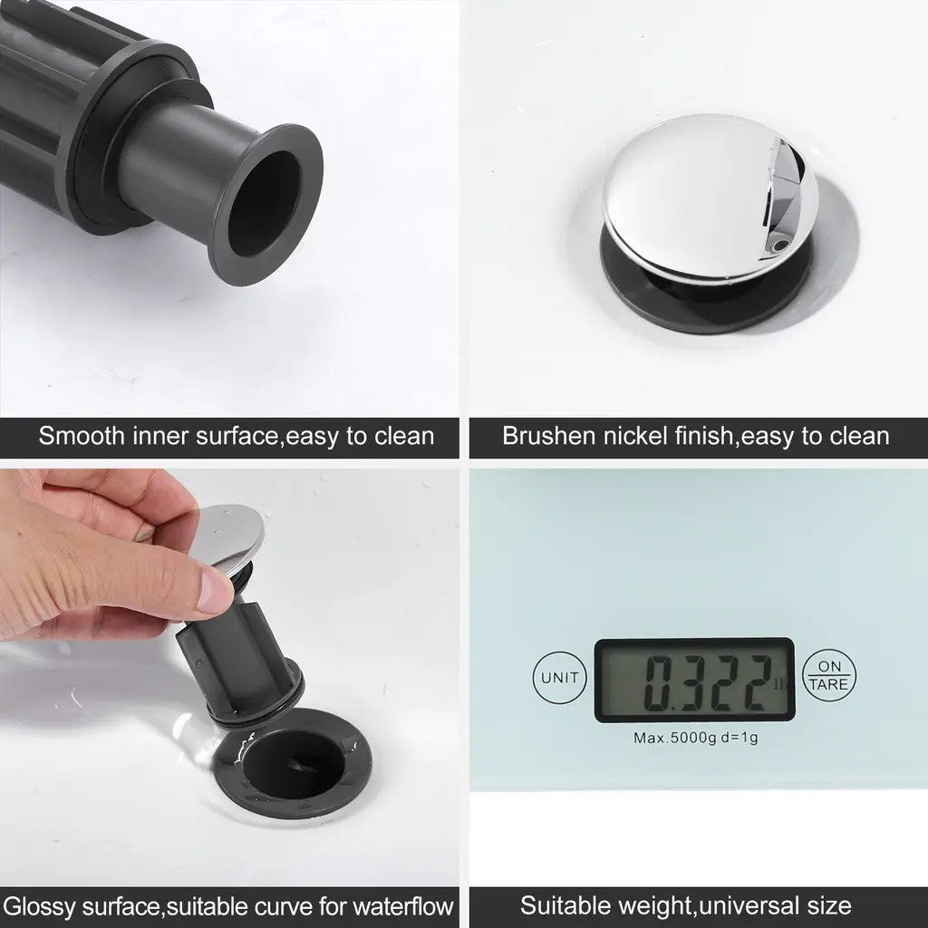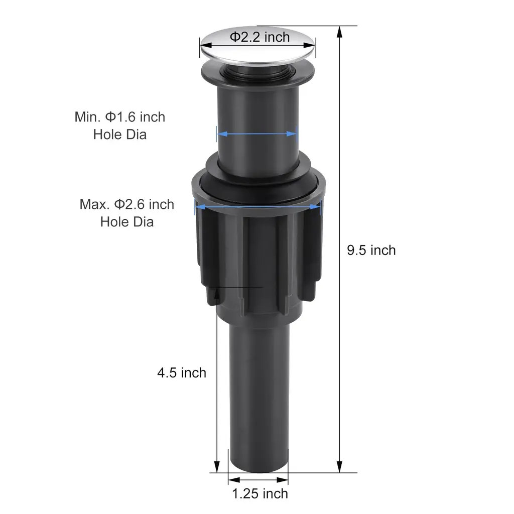 This high-quality sewer has a smooth, corrosion-resistant surface. It is meticulously crafted from durable, high-grade ABS material for reliable performance and durability. Its push button ensures easy control over draining the sink, improving convenience for everyday use. It is designed to drain the sink quickly and efficiently, keeping it clean and unclogged. It comes with an anti-clogging strainer that prevents debris, hair and other small items from clogging the sink drain, maintaining optimal functionality.Highlights