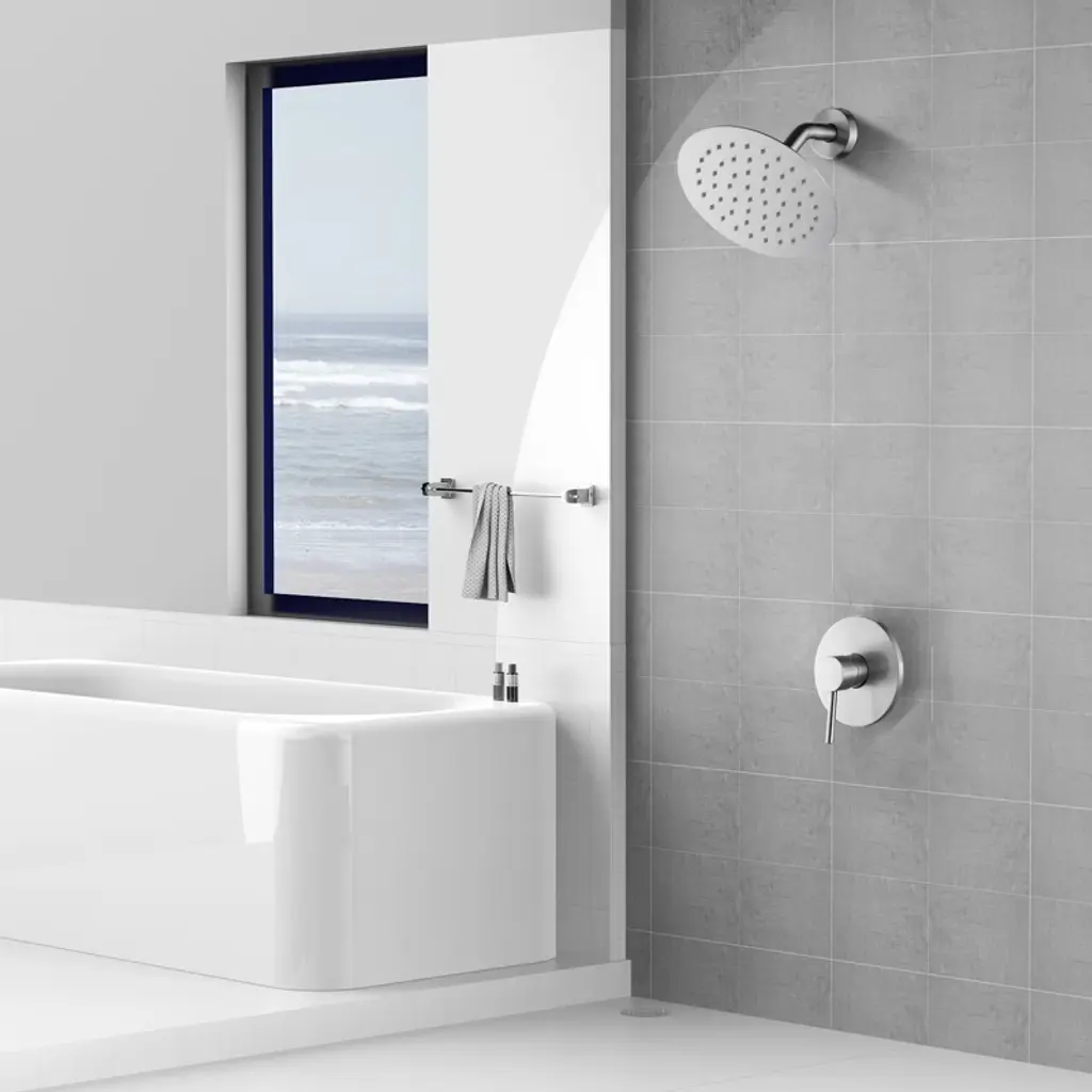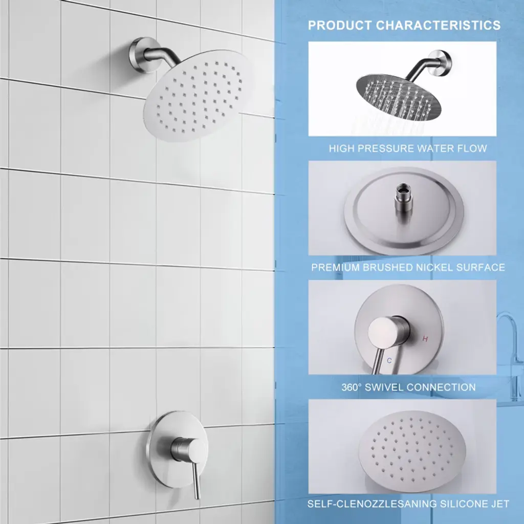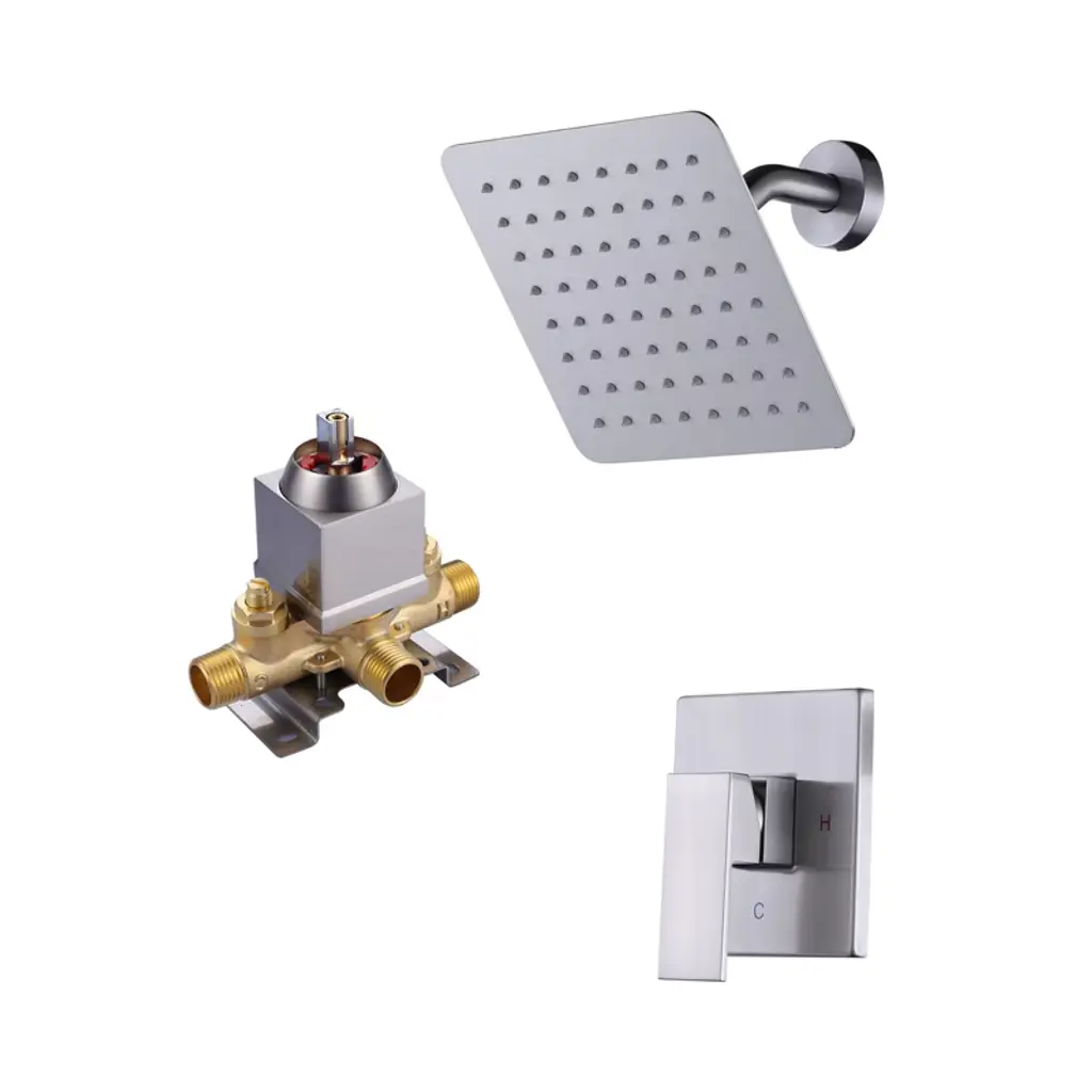 Relax and wash away the day with this 8 in. wall-mount shower head. High-quality pressure balance valve ensures a perfect shower relaxation experience. Silicone water outlet for easy cleaning and prevents residue buildup. Single-handle is included for effortless temperature adjustment and water flow.