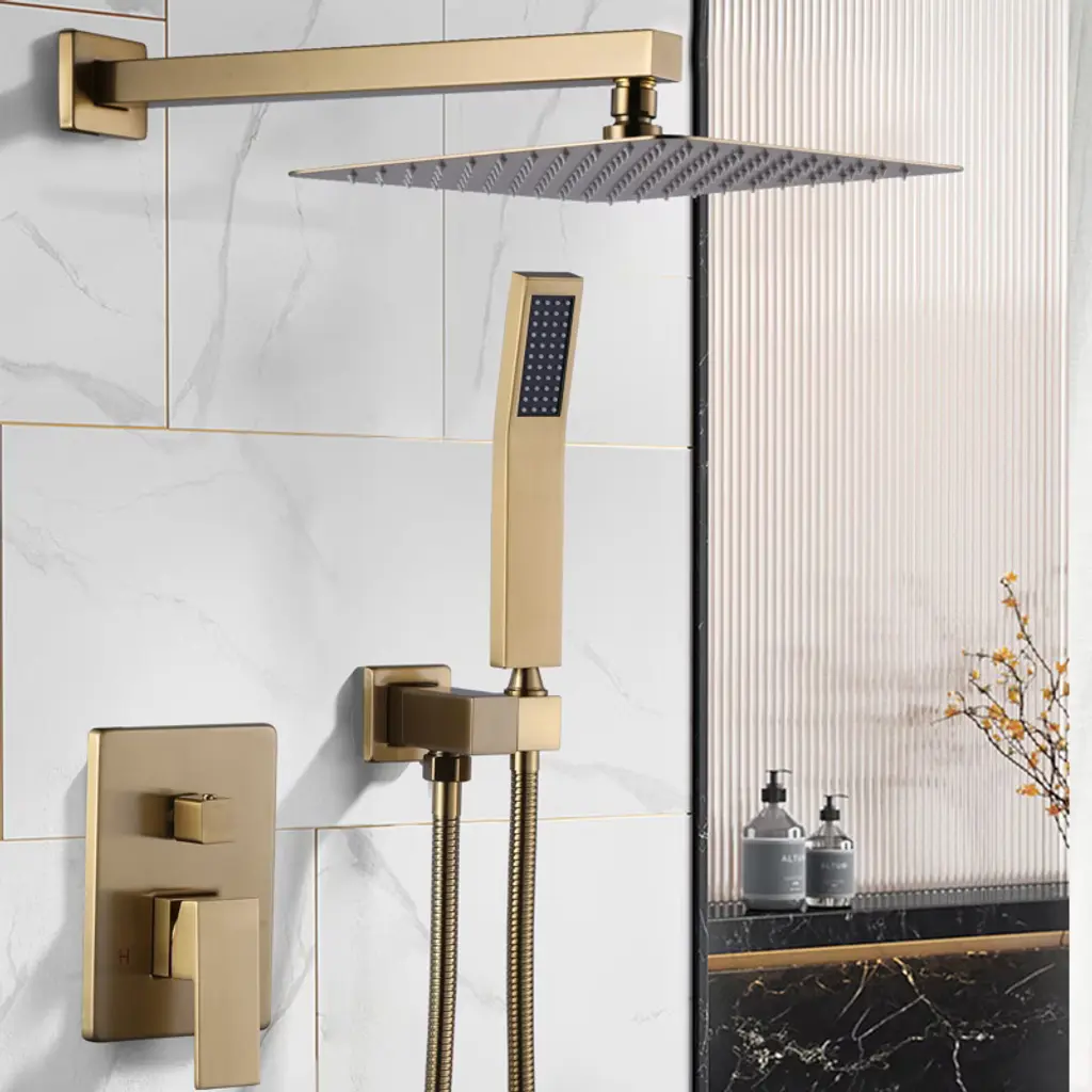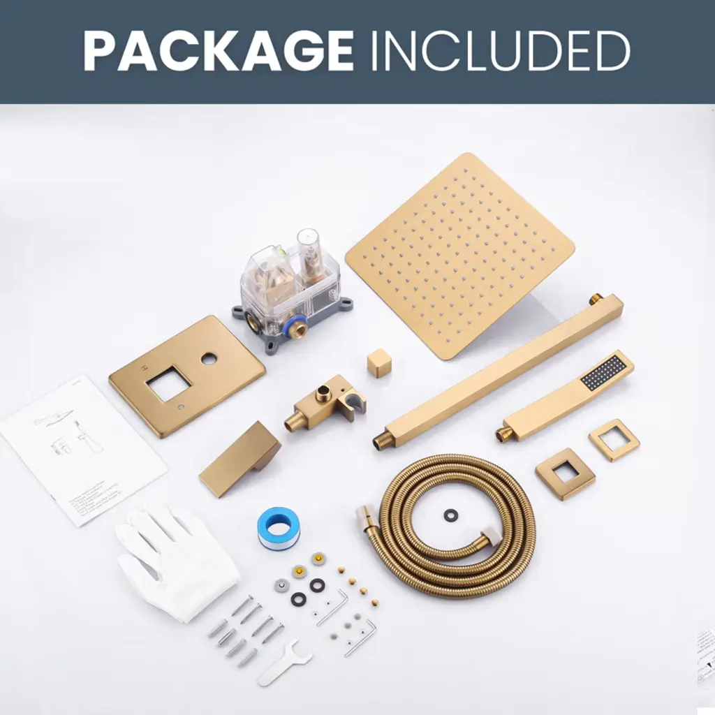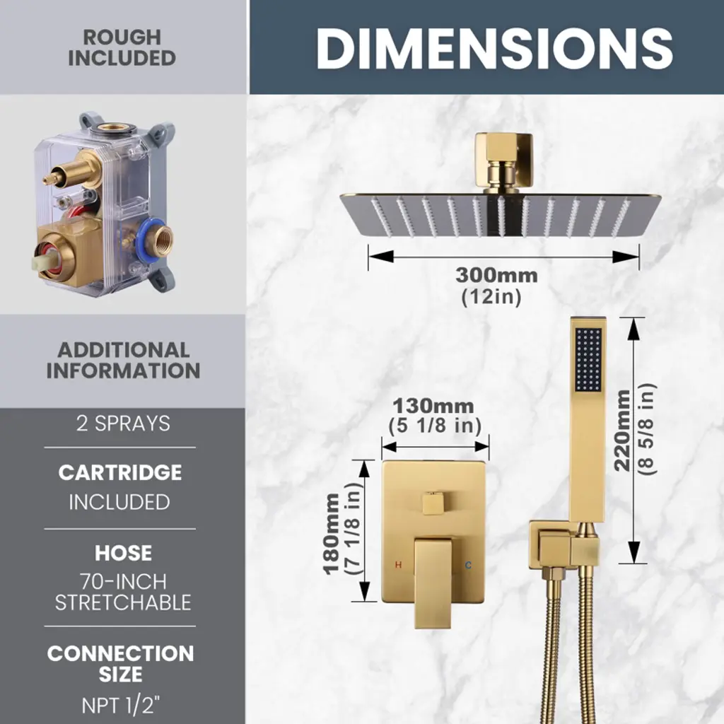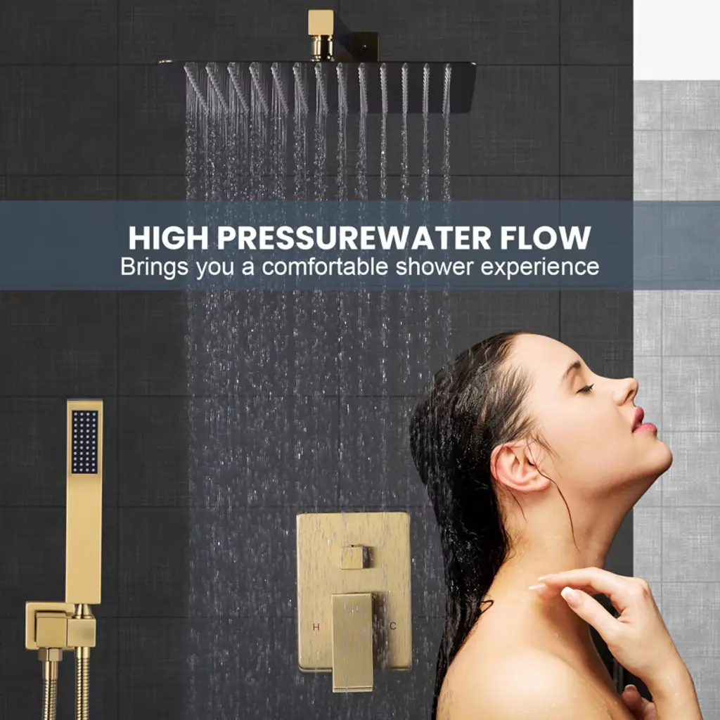 Wowow Single Handle 2-spray 1.8 Gpm With 12 In. Square Shower Head And Handheld Shower Heads Shower Faucet In Brushed Gold