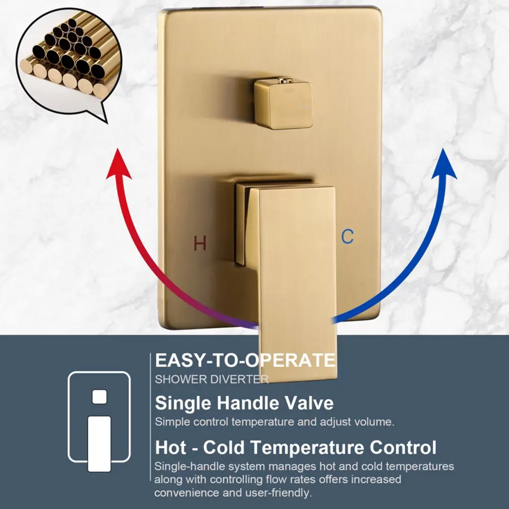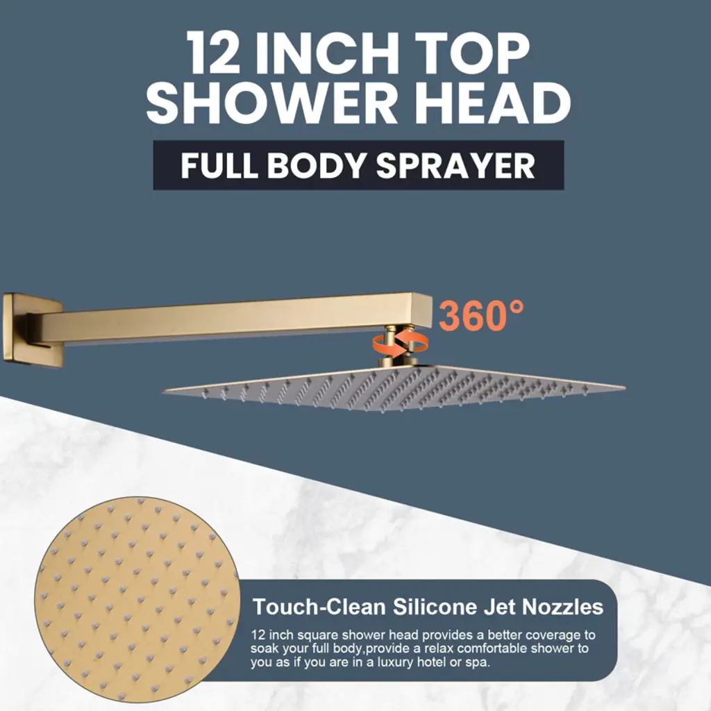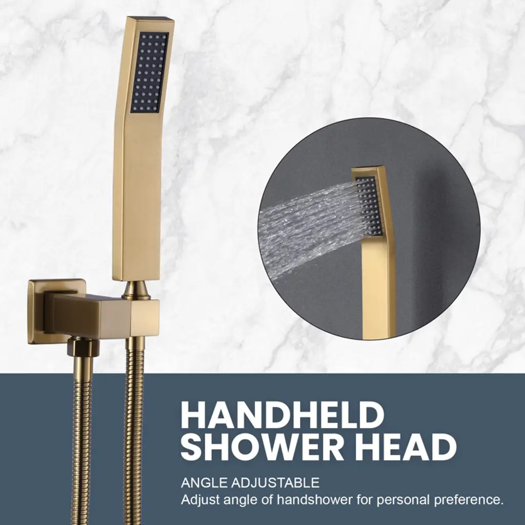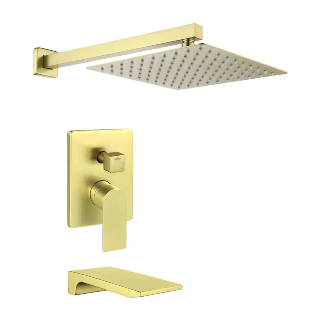 Wowow Single Handle 2-spray 1.8 Gpm With 12 In. Square Shower Head And Handheld Shower Heads Shower Faucet In Brushed Gold