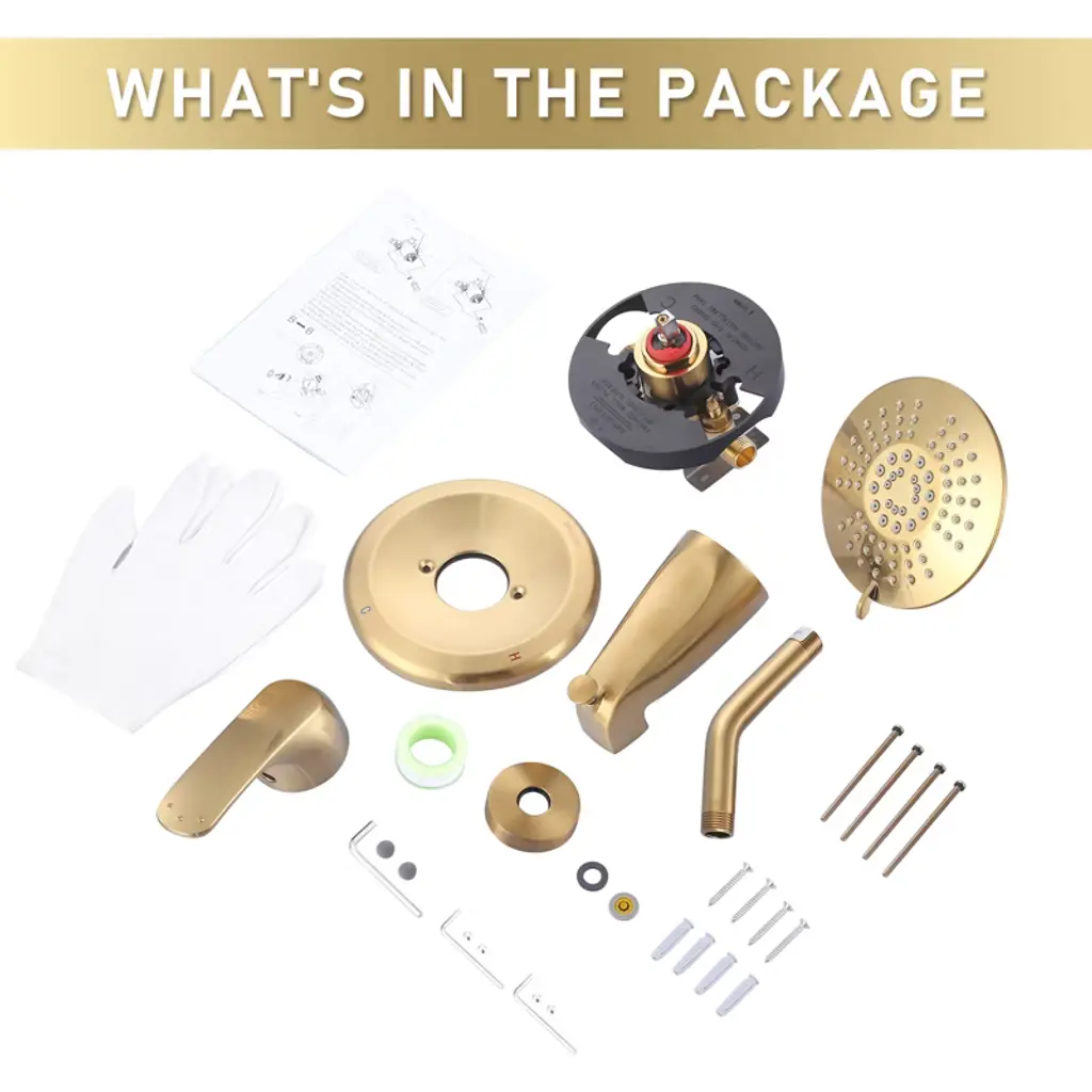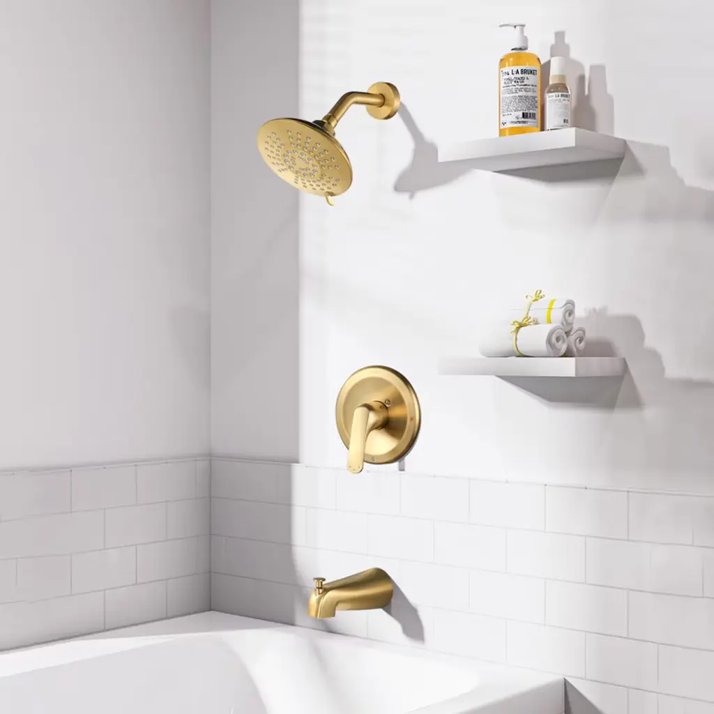 Wowow Single Handle 5-spray Shower Faucet 1.8 Gpm With Tub Spout In Brushed Gold