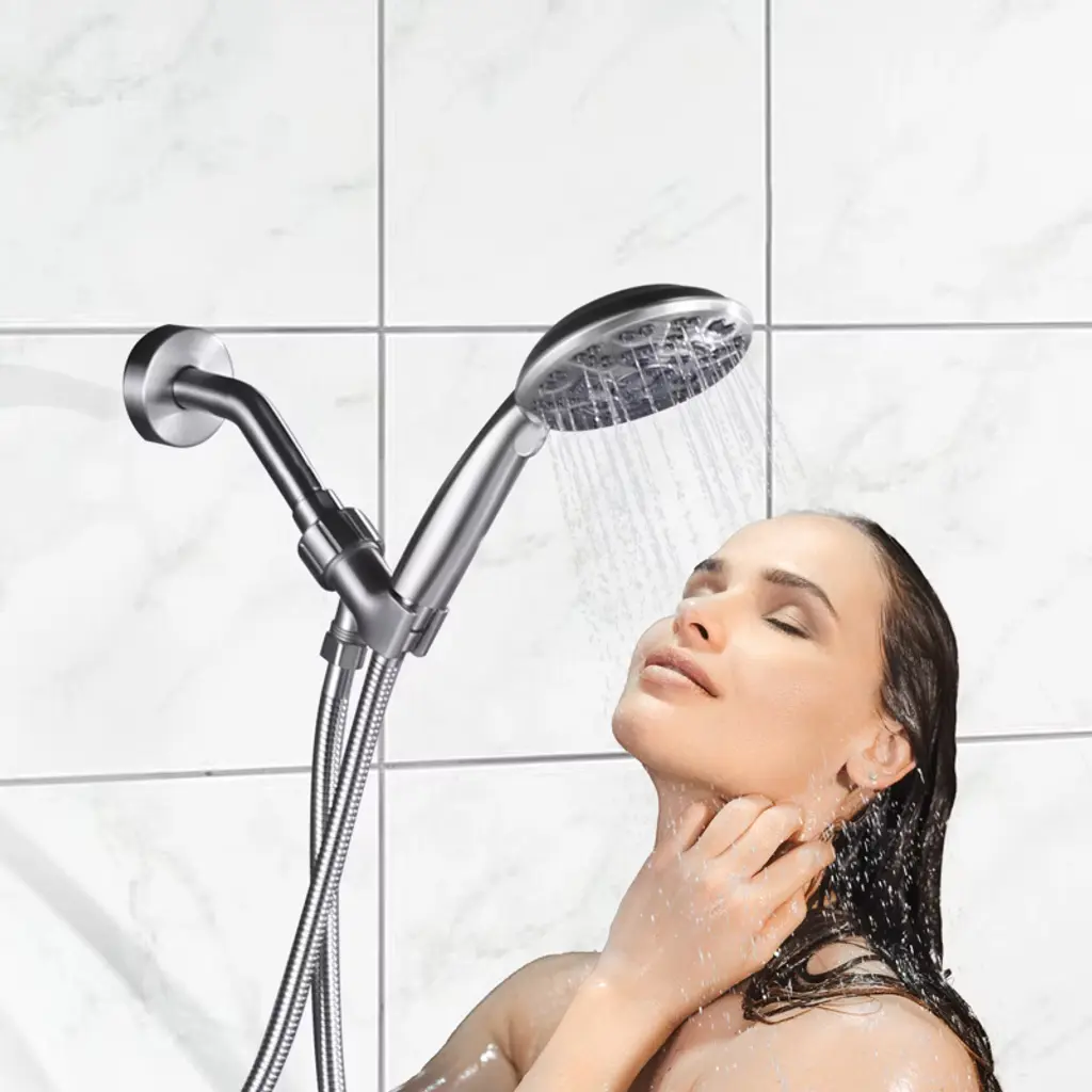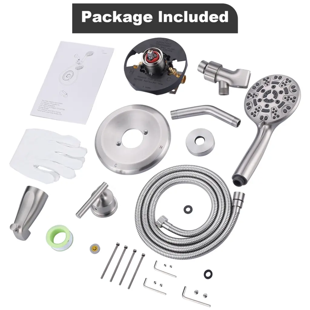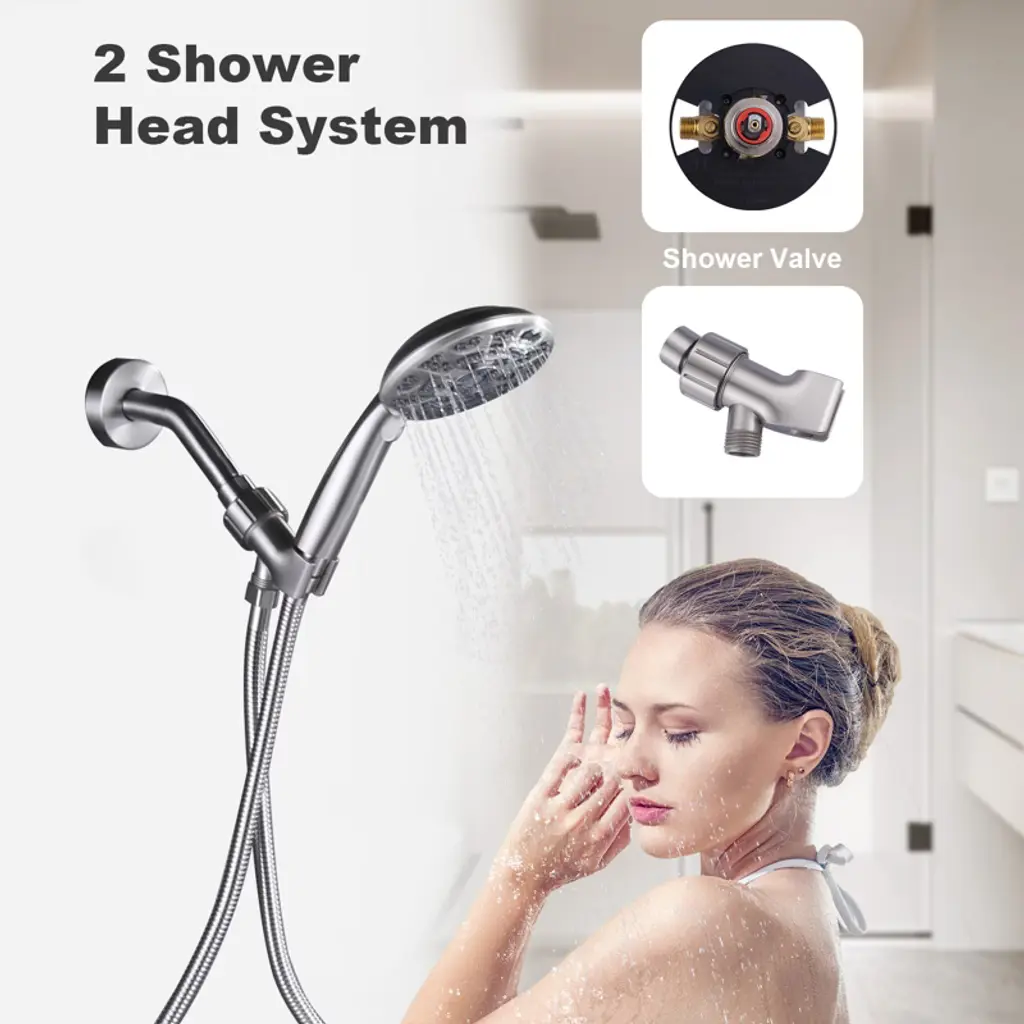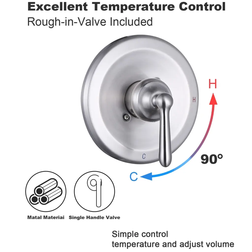 This shower faucet integrates 7 well-designed shower patterns to fully meet your personalized bathing needs, making every shower an ultimate enjoyable experience. 70 in. extra long shower hose makes your showering process more flexible. Fixed in-wall shower faucet, perfect integration with the overall bathroom style, also makes the bathroom space more neat, low-level design bathtub spout, to meet your immediate water needs. The solid brass fixed shower head connector not only regulates the water flow accurately, but also ensures a long service life, giving you a great showering experience.