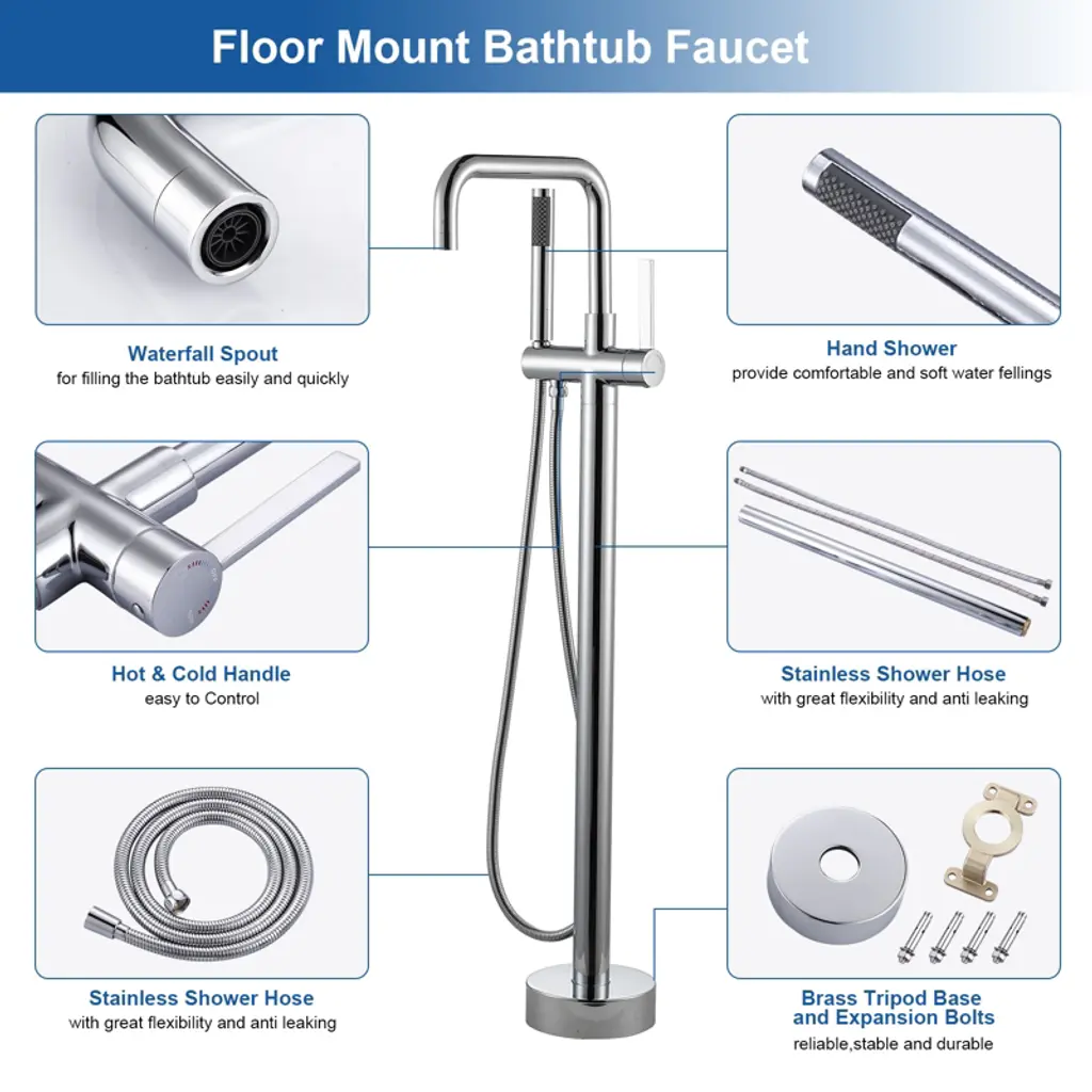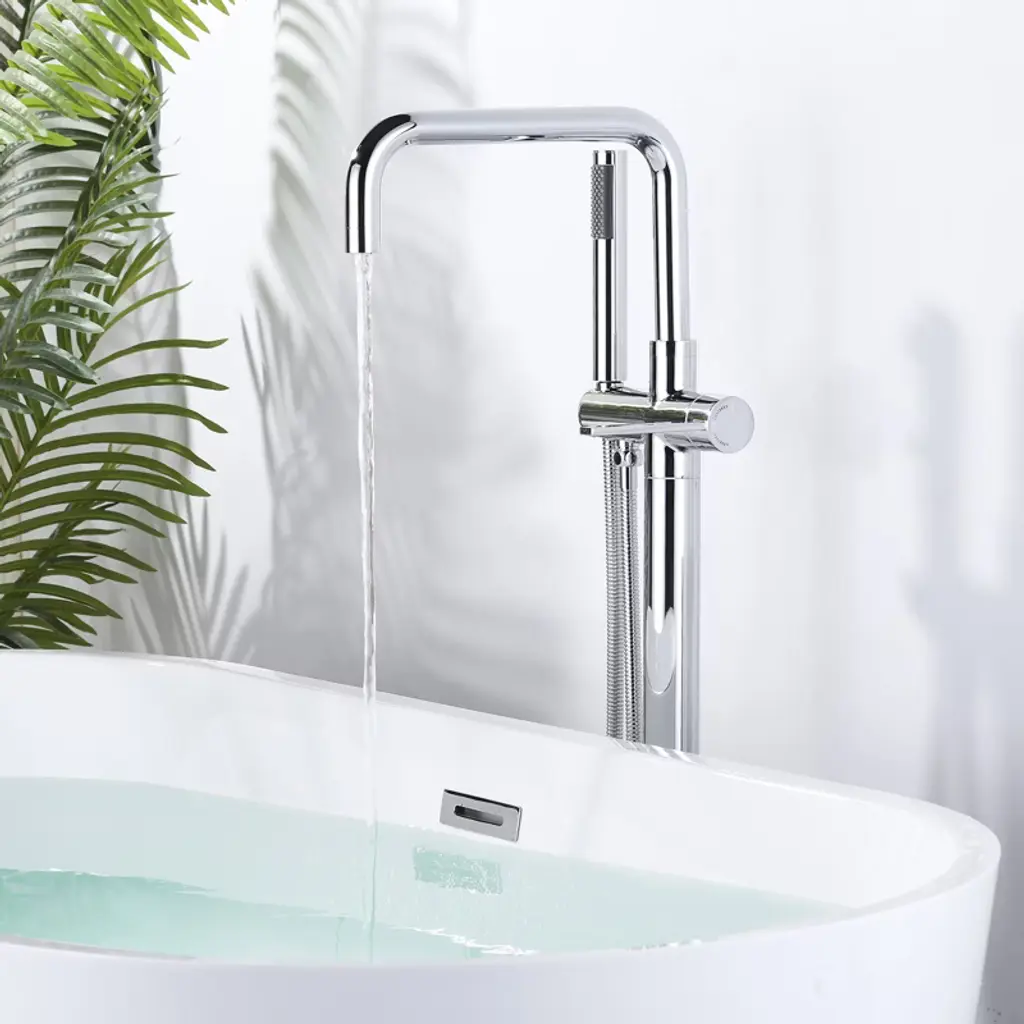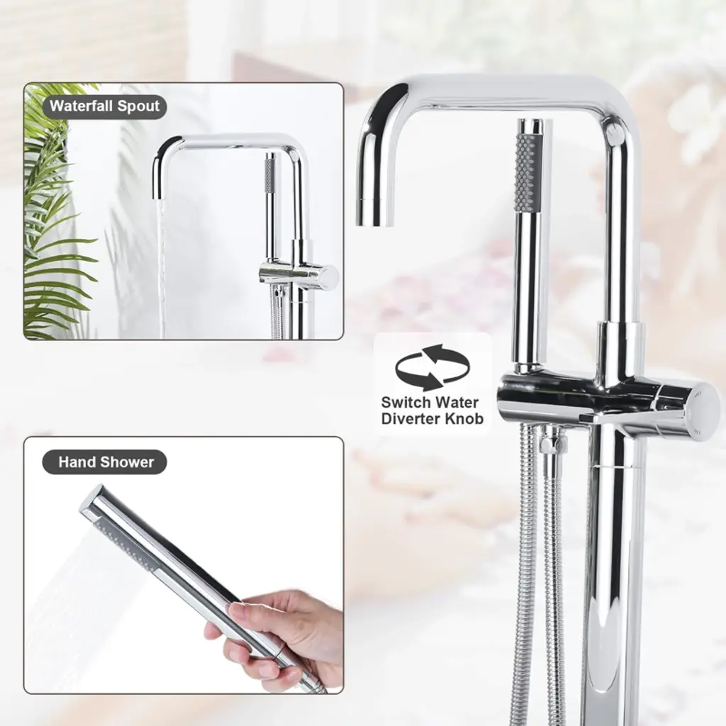 Wowow Single-handle Freestanding Tub Faucet Floor Mounted With Hand Shower In Chrome