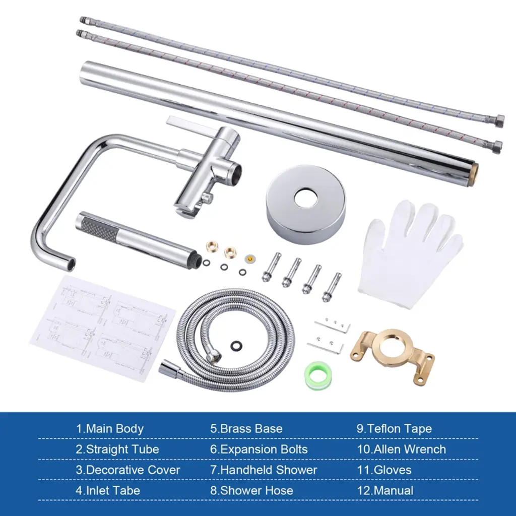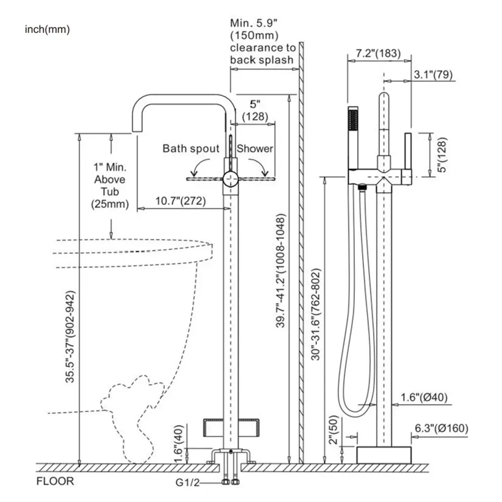 Bathtub faucet is made of sturdy brass to ensure reliability and durability. With the convenient diverter knob, you can easily switch between filling the tub and using the handheld shower for versatile water flow control. The 360° swivel faucet is flexible and easy to use, and the single-lever design is simple to operate for seamless control of the water temperature and flow, ensuring a smooth bathing experience. It also offers greater flexibility and a wider choice of installation locations than traditional wall-mounted designs.