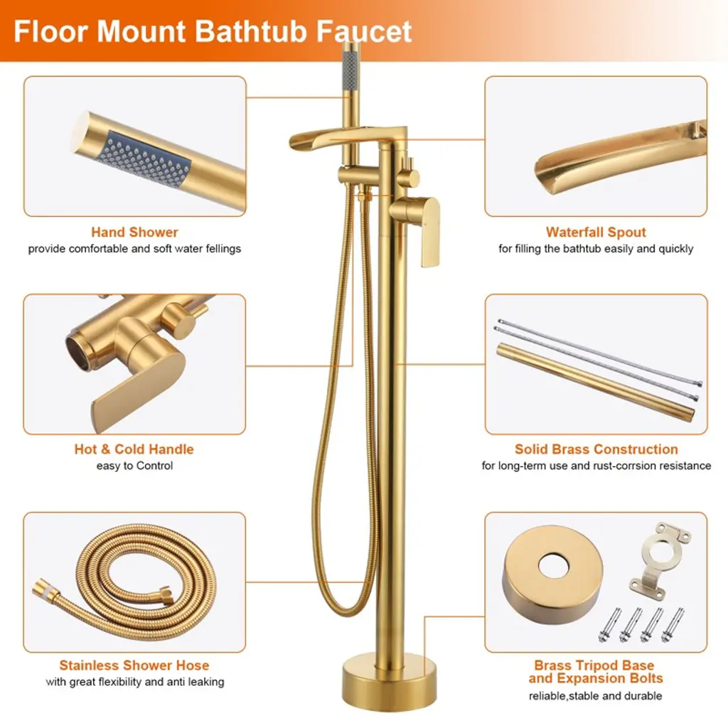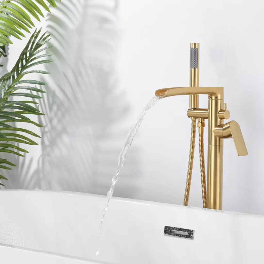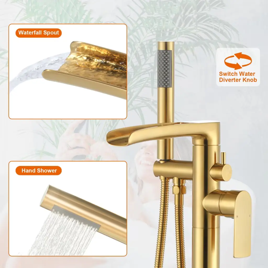 Wowow Single Handle Freestanding Tub Faucet With Hand Shower In Brushed Gold