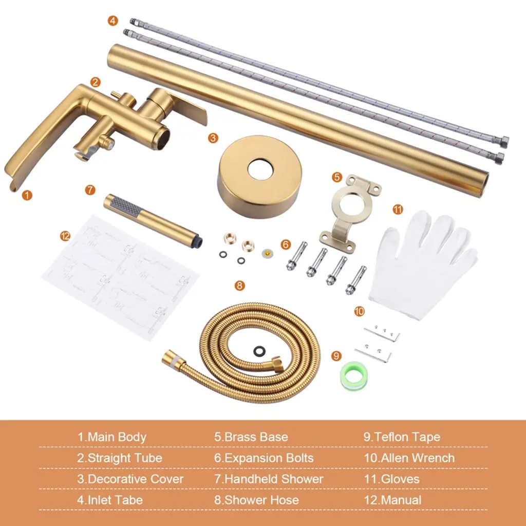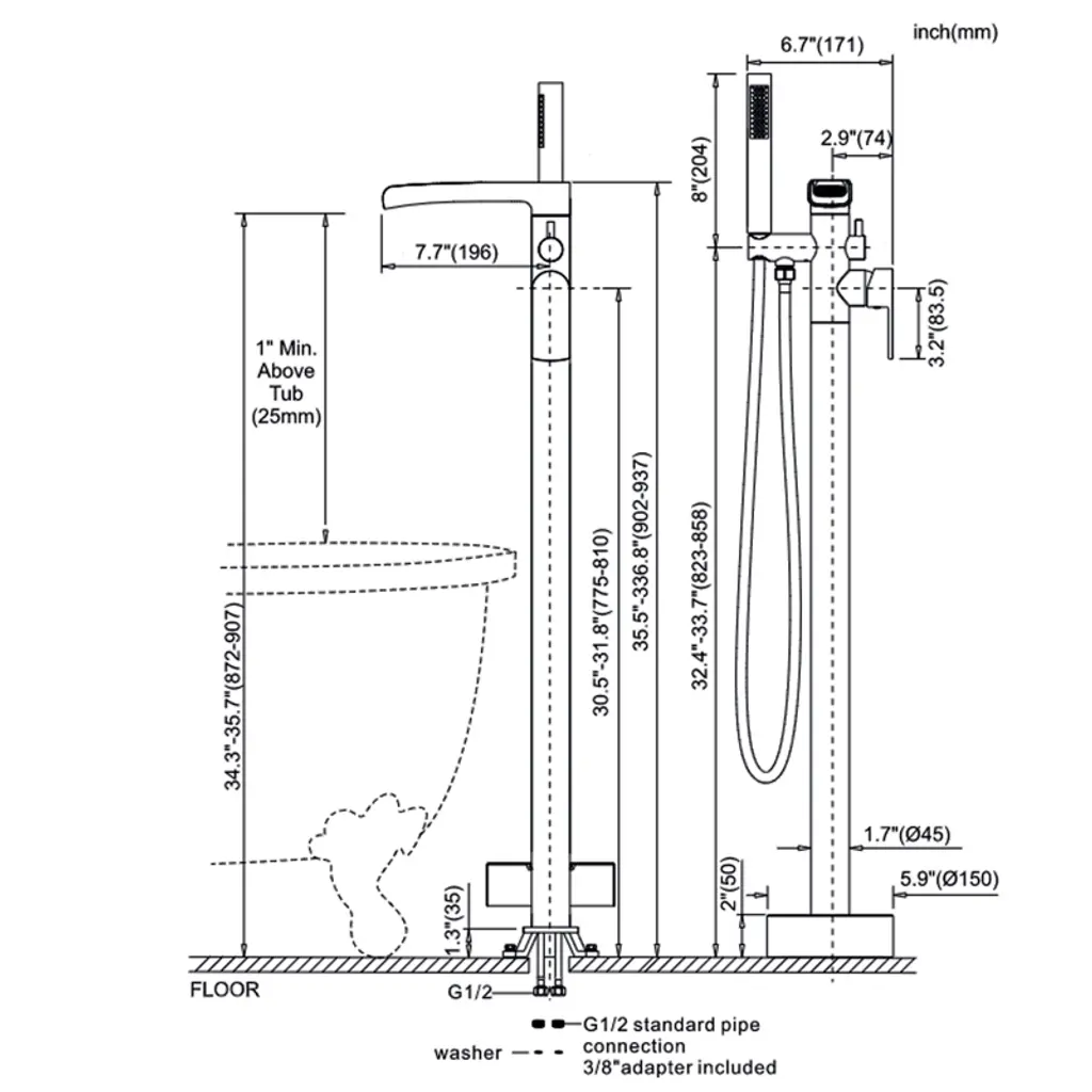 This freestanding tub faucet is an indispensable high-end addition to the modern bathroom with its exceptional quality and design. The sturdy brass structure not only ensures the faucet's stability and durability, but also imparts an elegant texture. The flexible hand shower is equipped with a stainless steel hose, which is structurally effective in preventing water leakage, making every use worry-free. The sturdy brass base further enhances the overall stability and keeps the faucet firm and shaky even when the water flow is strong. Most notably, the faucet is equipped with a convenient water switching knob that allows users to easily select whether the water comes out of the handheld shower or the bathtub spout with a simple twist, improving bathing efficiency.