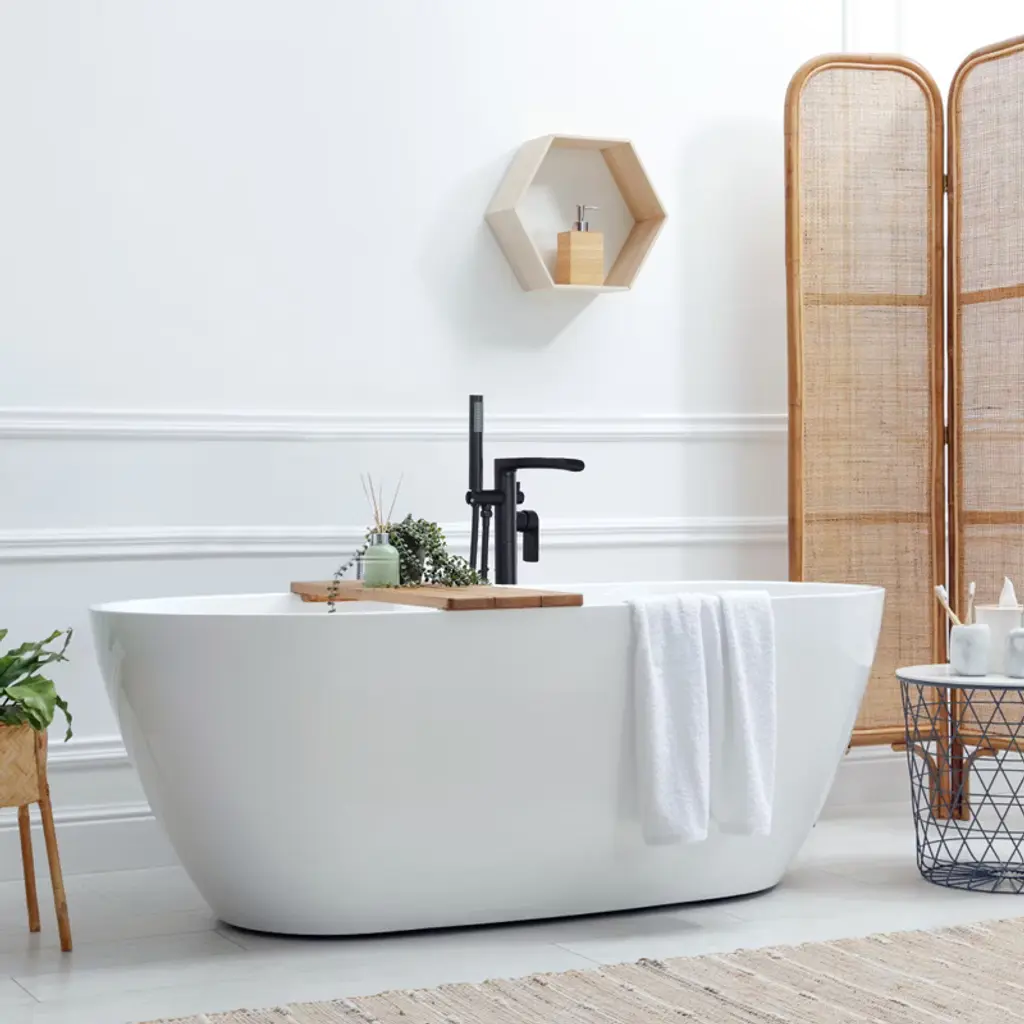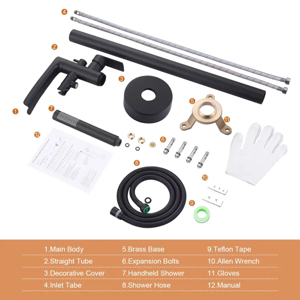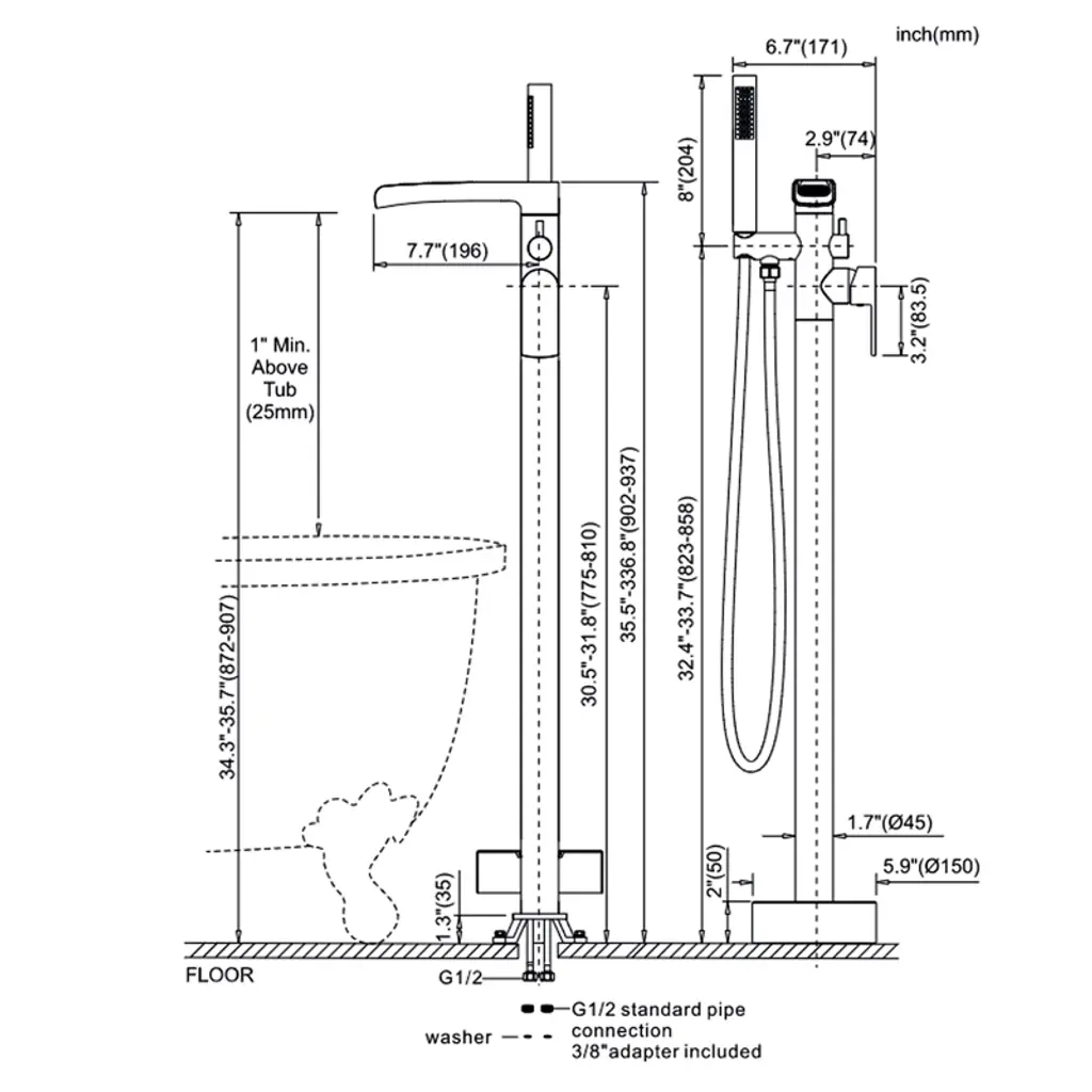 This freestanding tub faucet is an indispensable high-end addition to the modern bathroom with its exceptional quality and design. The sturdy brass structure not only ensures the faucet's stability and durability, but also imparts an elegant texture. The flexible hand shower is equipped with a stainless steel hose, which is structurally effective in preventing water leakage, making every use worry-free. The sturdy brass base further enhances the overall stability and keeps the faucet firm and shaky even when the water flow is strong. Most notably, the faucet is equipped with a convenient water switching knob that allows users to easily select whether the water comes out of the handheld shower or the bathtub spout with a simple twist, improving bathing efficiency.