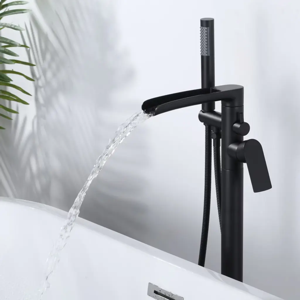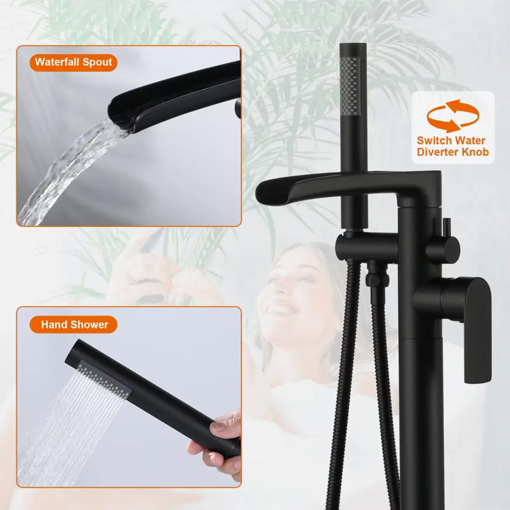 Wowow Single Handle Freestanding Tub Faucet With Hand Shower In Matte Black