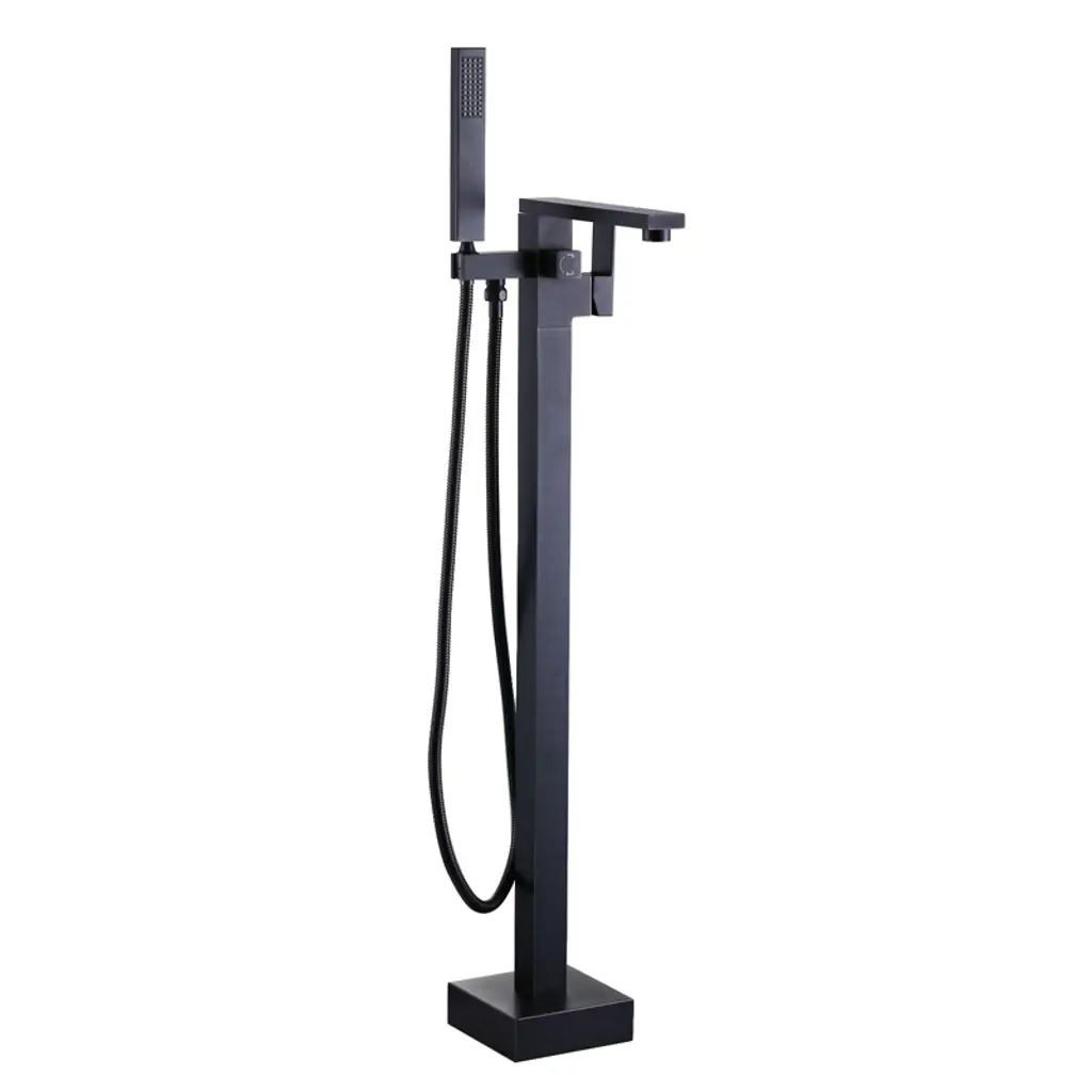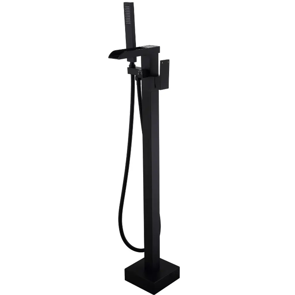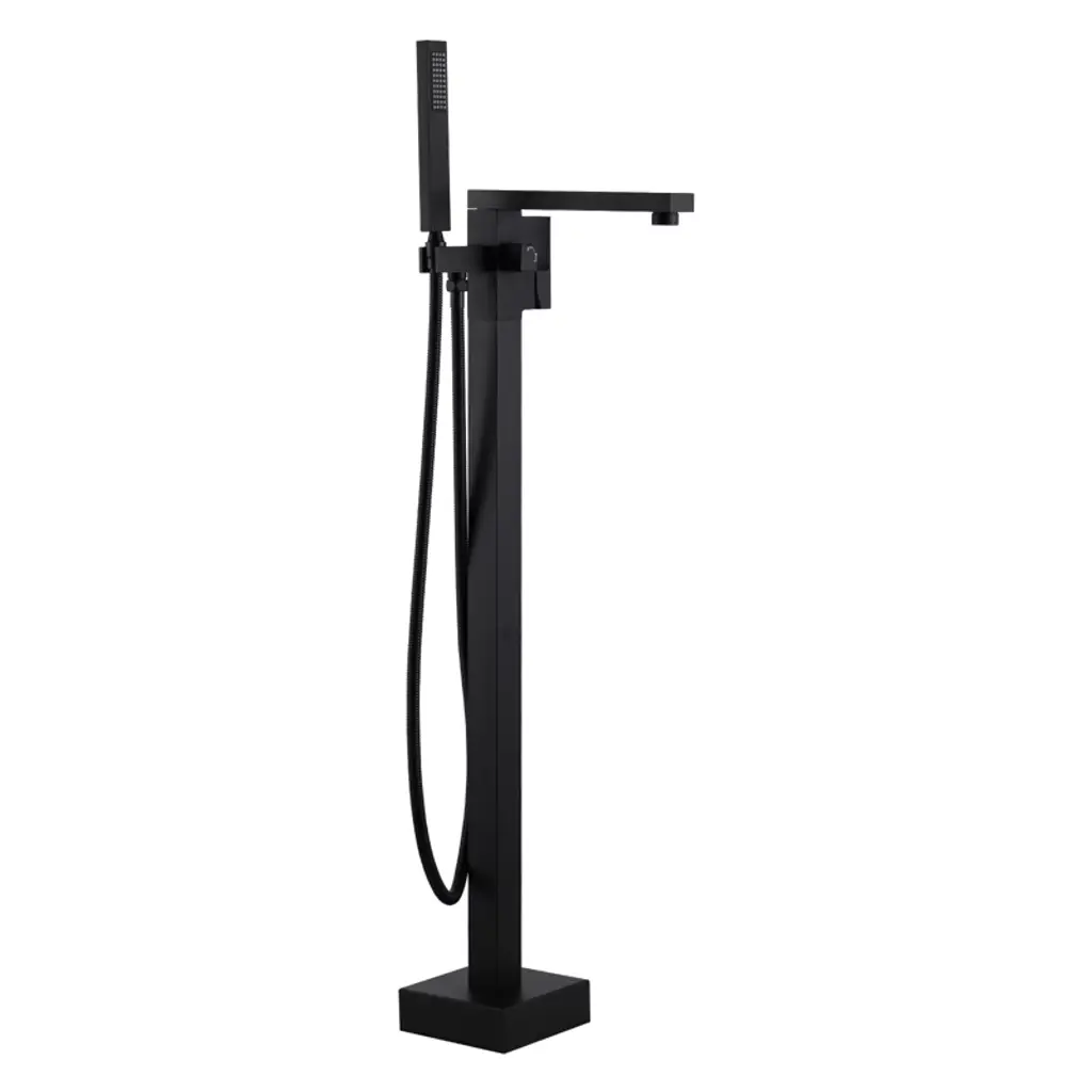 Wowow Single-handle Freestanding Tub Faucet With Hand Shower In Matte Black