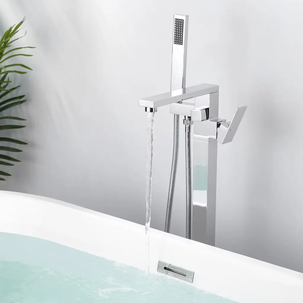 Wowow Single-handle Freestanding Tub Faucet With Hand Shower In Polished Chrome