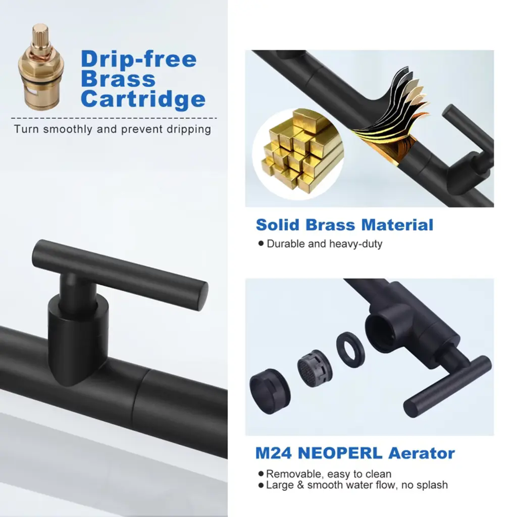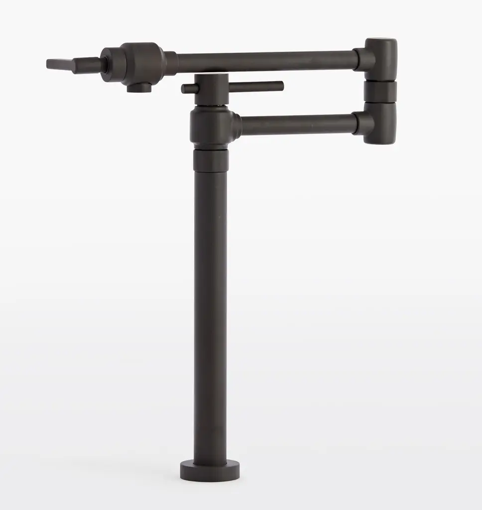 Wowow Solid Brass Deck Mount Pot Filler Faucet, Pot Filler With Stretchable Double Joint Swing Arm In Matte Black