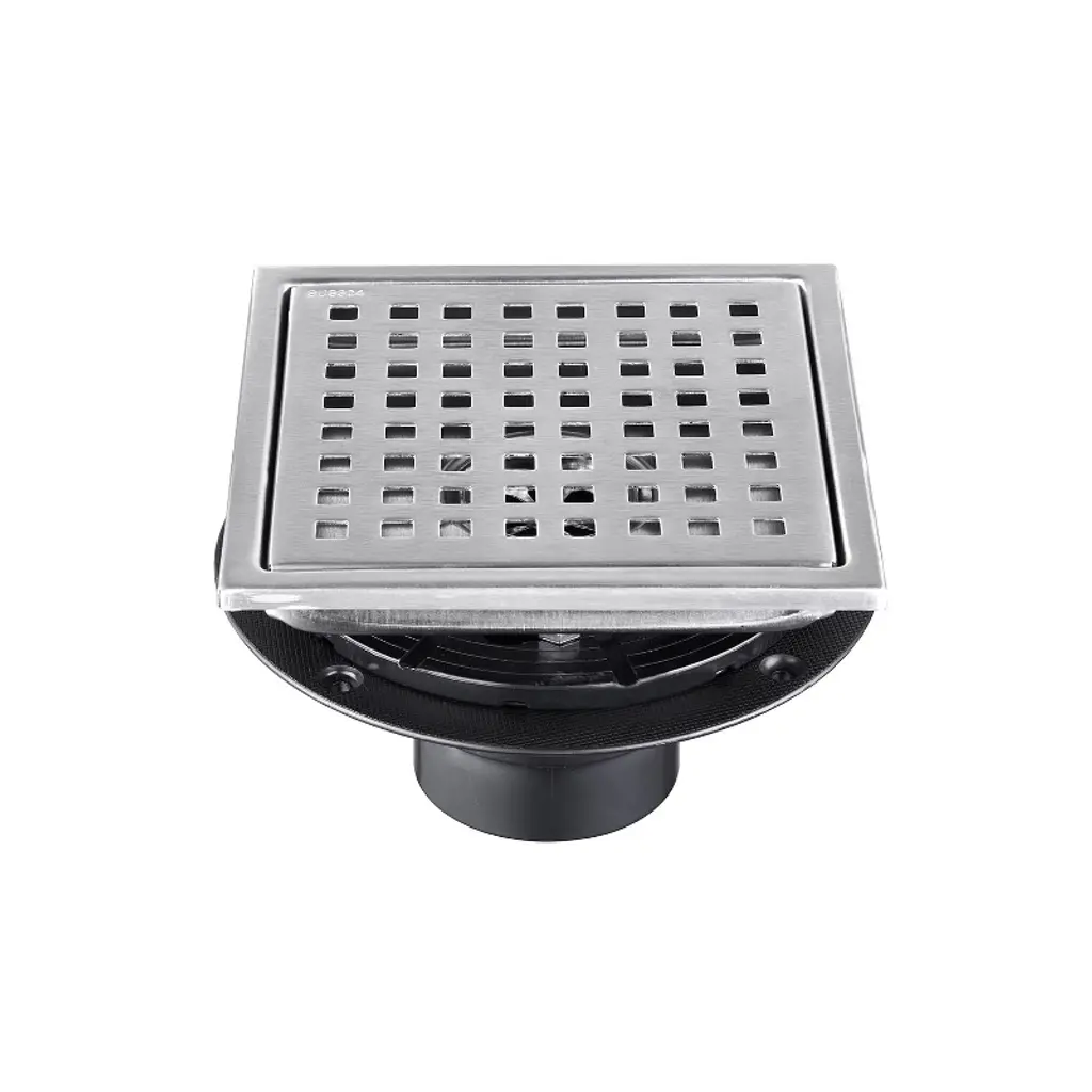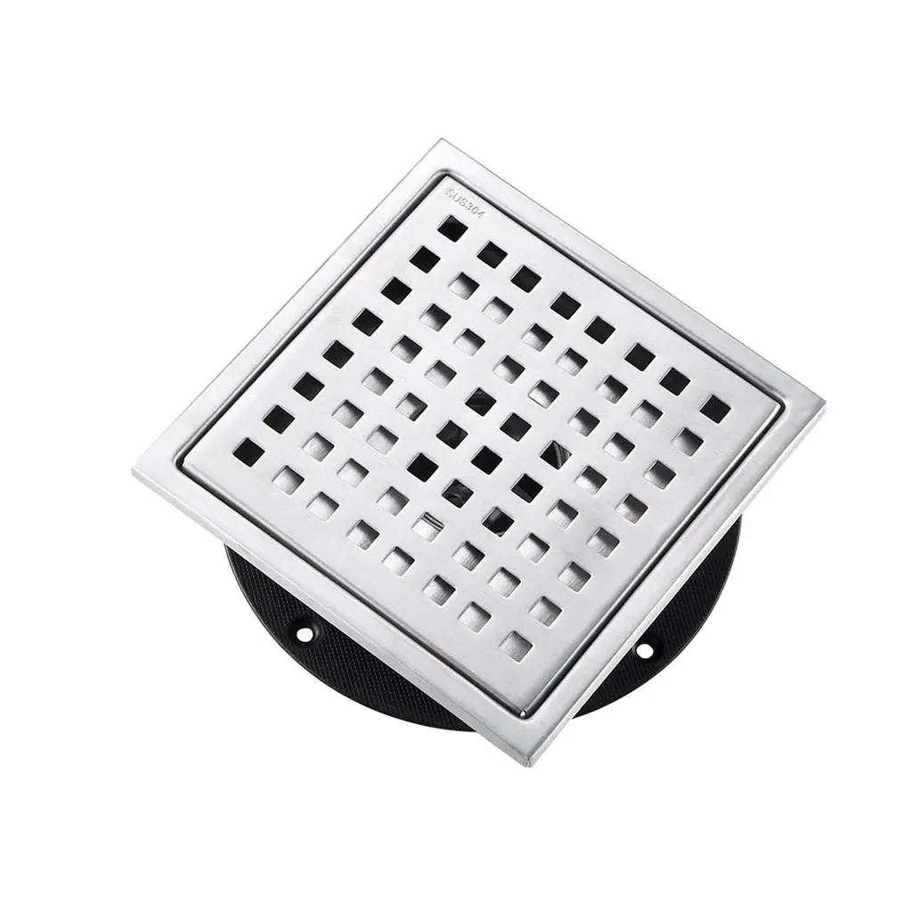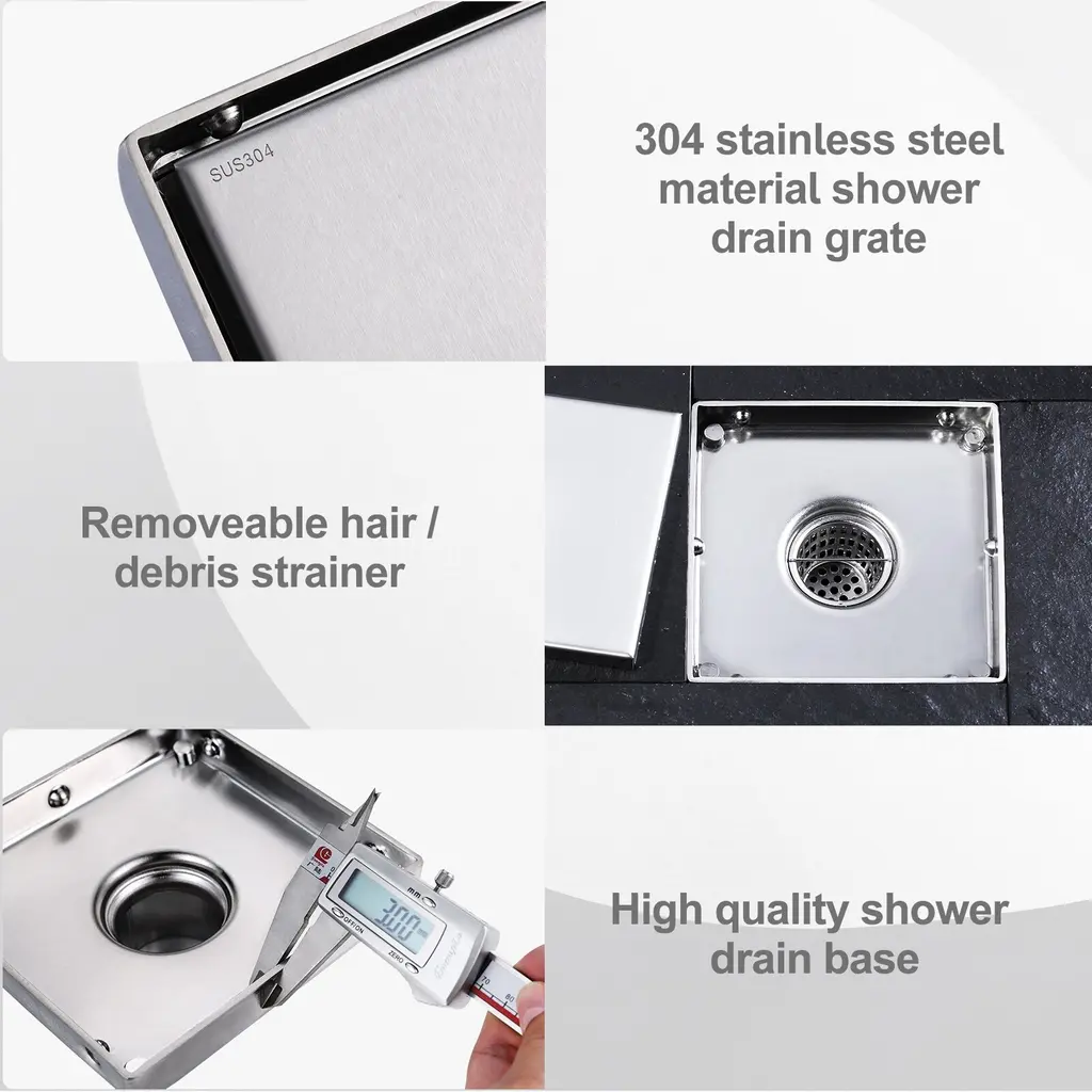 The floor drain has completely become a decoration for bathrooms, kitchens, swimming pools and other places where it is suitable. The flip face mask is embedded in the ceramic tiles to make your shower room more natural and harmonious.The surface of this floor drain adopts the process of brushed nickel, in addition to having a unique bright appearance, it can be more effective anti-rust, anti-oxidation and anti-scratch.This floor drain has a small lifting hook, which can help you quickly and easily lift the detachable lid for cleaning, so as to keep the floor drain and sewer clean, and let your bathroom and kitchen feel the fragrance every moment.This floor drain is equipped with a stainless steel filter, which can effectively capture hair and valuable small objects, such as rings, bracelets, necklaces, etc., to avoid clogging the drain pipe, allowing you to perform washing tasks with peace of mind.This floor drain outlet is 2 inches in diameter and has a high flow capacity of 20-25 L/min. It can drain quickly, avoid the problem of water accumulation on the shower room or swimming pool floor.Our products strictly control the quality details of each floor drain. The thicker main body and panel protection layer are more durable, prevent rust, have quality, and show high grade.Feature: