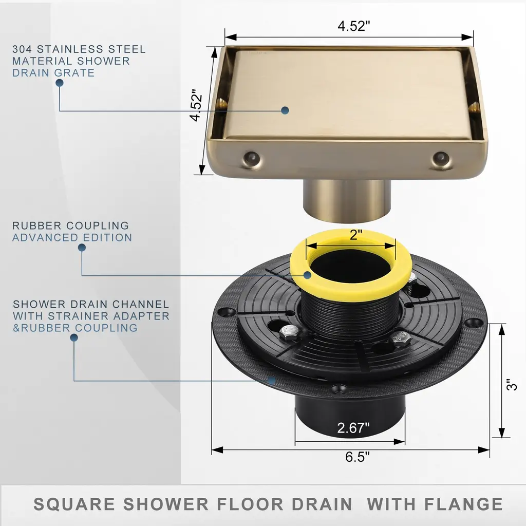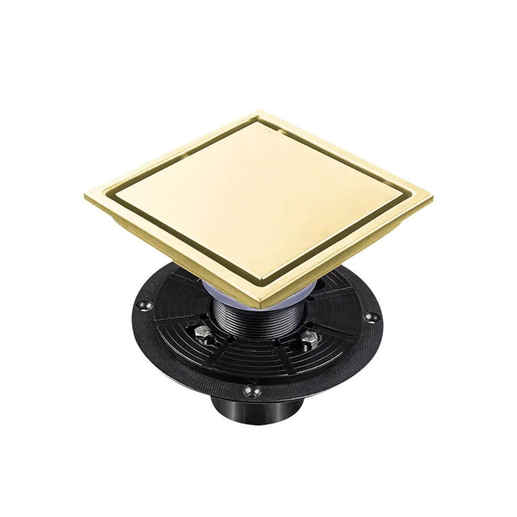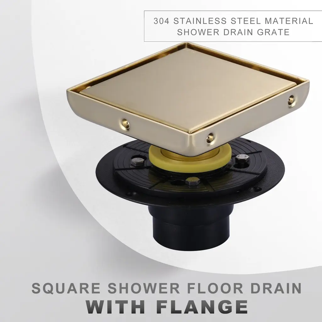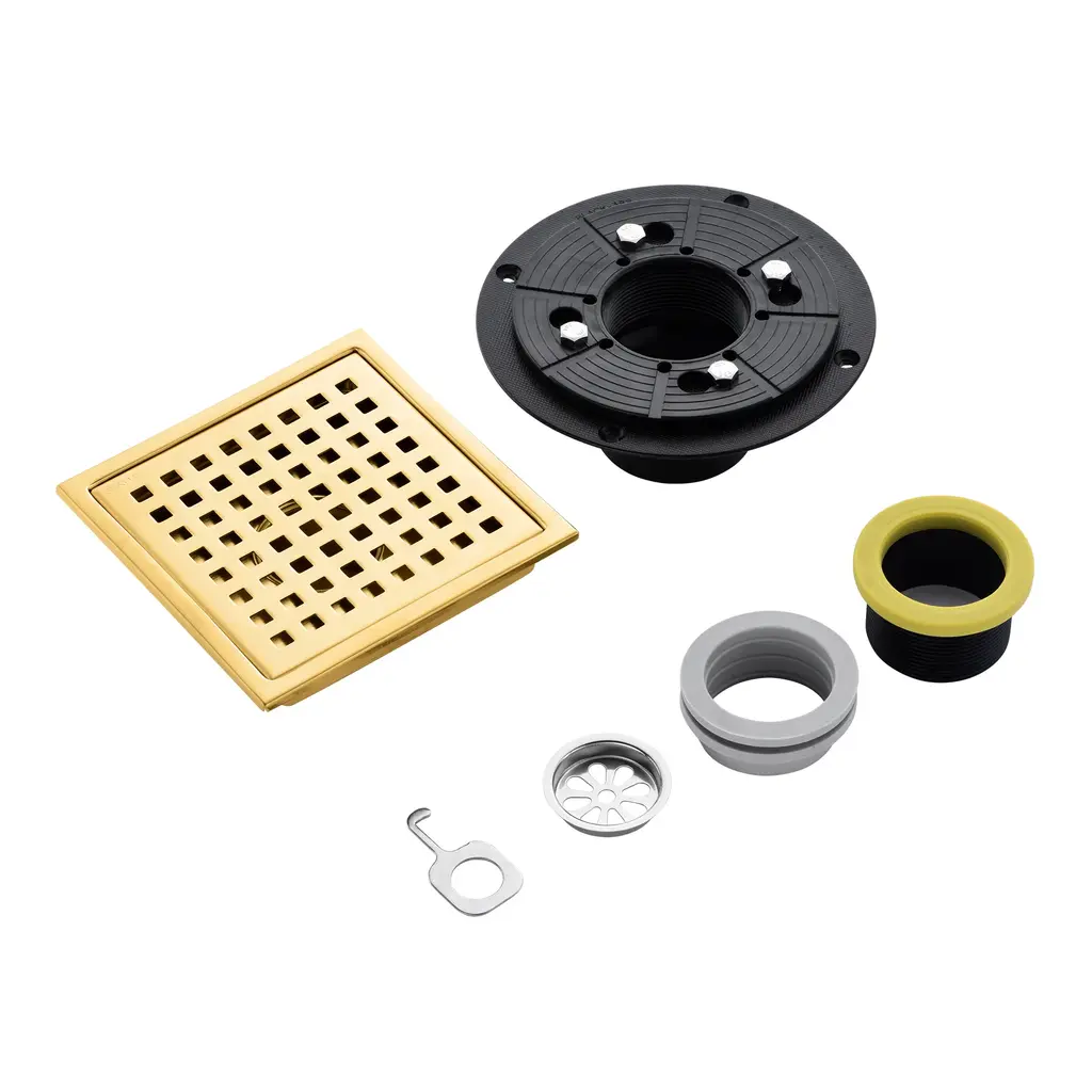 Wowow Square Shower Drain With Tile Insert Grate And Hair Strainer - Gold