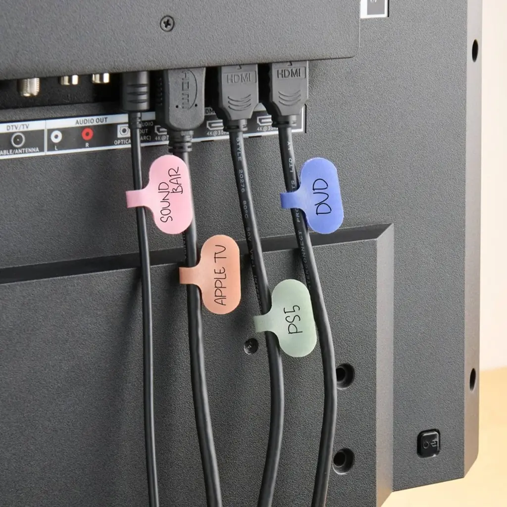 Hey, we get it. Looking at the cables connected to the back of your TV, or all the cords plugged into your power strip, is like looking at identical septuplets. Which one is Zachary? Use our hook-and-loop cord identifiers and you’ll never unplug the wrong one again. (Hint: Zach has a freckle on his chin.)