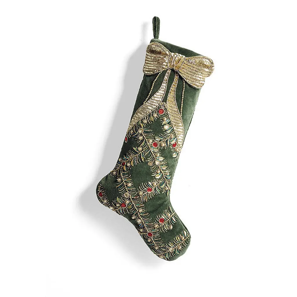 A flowing gold bow and delicate garland pattern are an elegant way to wrap up your holiday decor. Gemstones, sequins and beads are meticulously applied by hand to green velvet to create a timeless keepsake. 100% cotton velvet with polyester fill Hand-embellished with gemstones, sequins, beads and rhinestones Loop for hanging For indoor use Dry clean only Imported A Frontgate exclusive. At Frontgate, our primary focus is quality. We guarantee that every product we sell will stand up to the supreme test – our customers' satisfaction. To learn more about our policies, visit our Shipping & Processing, Returns & Exchanges and Warranty & Price Guarantee pages. A flowing gold bow and delicate garland pattern are an elegant way to wrap up your holiday decor. Gemstones, sequins and beads are meticulously applied by hand to green velvet to create a timeless keepsake. 100% cotton velvet with polyester fill Hand-embellished with gemstones, sequins, beads and rhinestones Loop for hanging For indoor use Dry clean only Imported A Frontgate exclusive. At Frontgate, our primary focus is quality. We guarantee that every product we sell will stand up to the supreme test – our customers' satisfaction. To learn more about our policies, visit our Shipping & Processing, Returns & Exchanges and Warranty & Price Guarantee pages.
