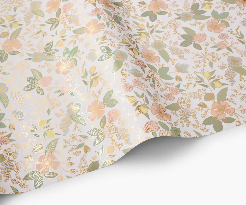 Dress up presents and projects with our wrapping paper rolls, which feature eight feet of paper with colorful illustrations, gold foil accents, and gridlines on the back.