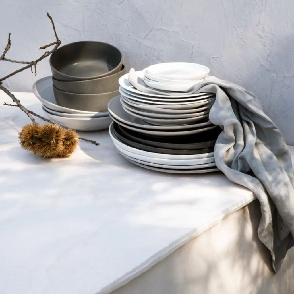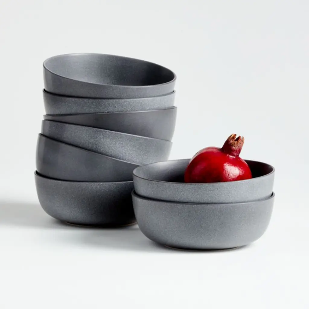 The subtle speckles of a reactive grey glaze animate the clean coupe shapes of our Wren bowl. Finished in tonal charcoal, the dish sets a modern table with its confident curves and organic appeal. For a beautifully cohesive look, pair the cereal bowl with the matching salad plate, dinner plate and mug. Each stoneware piece will have its own distinctive look due to the reactive nature of the glaze.