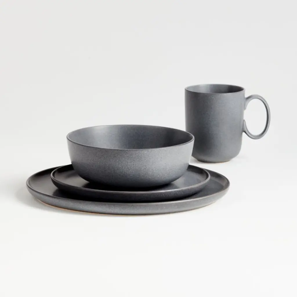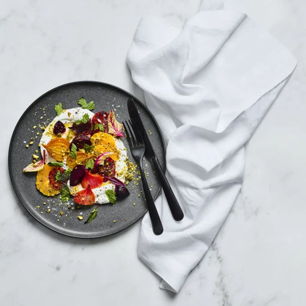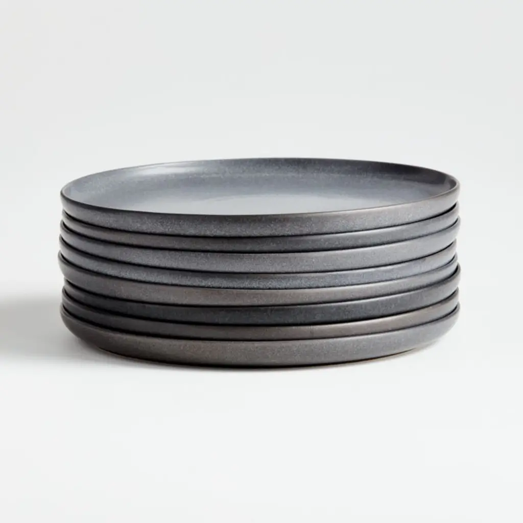 The subtle speckles of a reactive glaze animate the clean coupe shapes of our Wren grey salad plate. Finished in tonal charcoal, the dish sets a modern table with its confident curves and organic style. For a beautifully cohesive look, add the matching bowl, mug and dinner plate. Each stoneware piece will have its own distinctive look due to the reactive nature of the glaze.