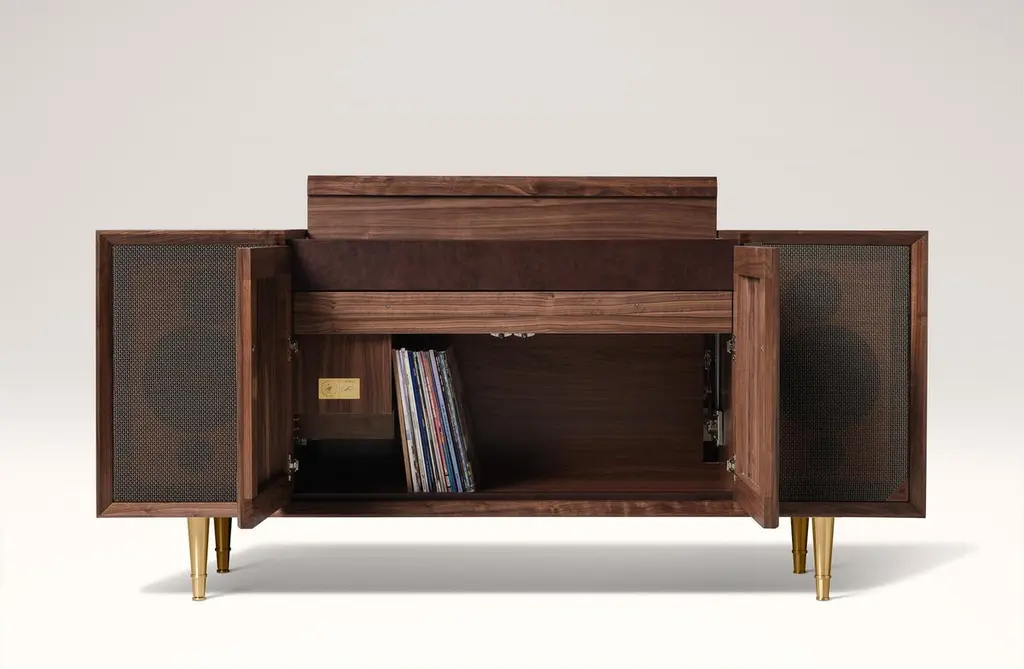 Wrensilva M1 Record Player Console In Natural Walnut / Brass