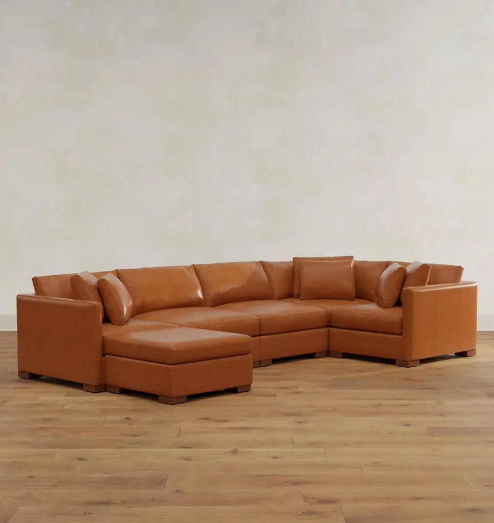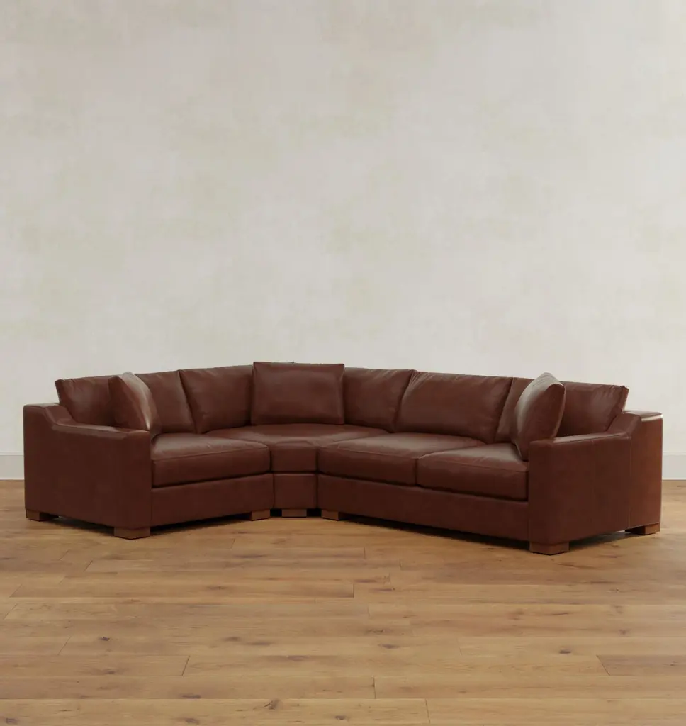 Wrenton Leather 3-Piece Double Sofa With Wedge Corner