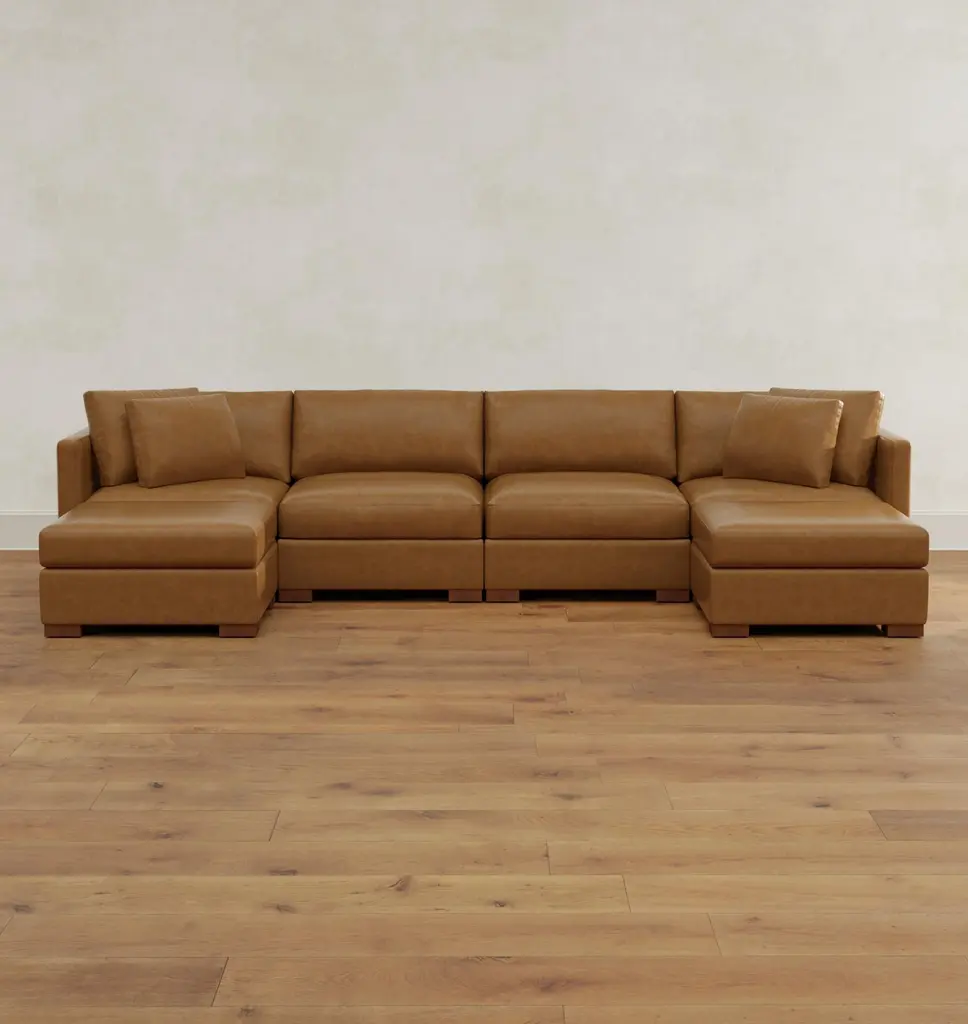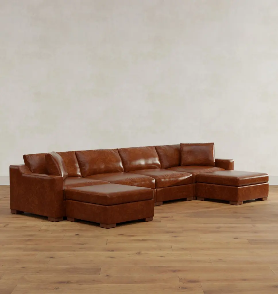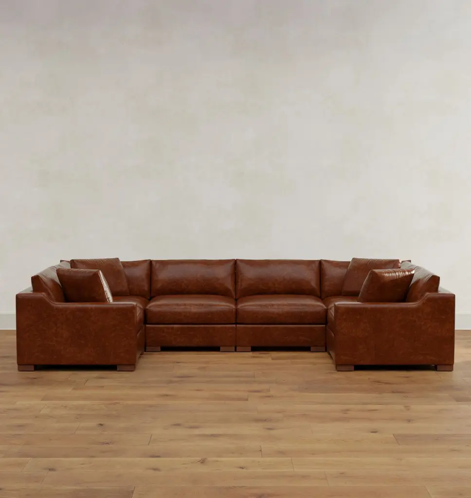 Wrenton Leather 6-Piece Double Ottoman Sectional Sofa
