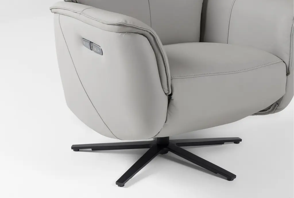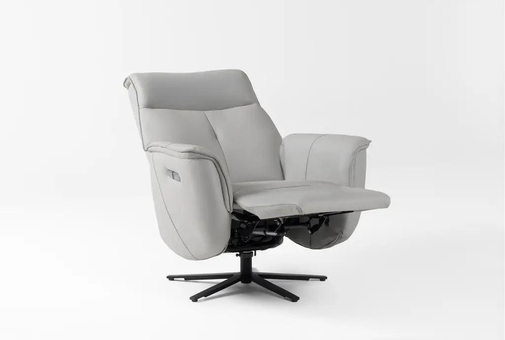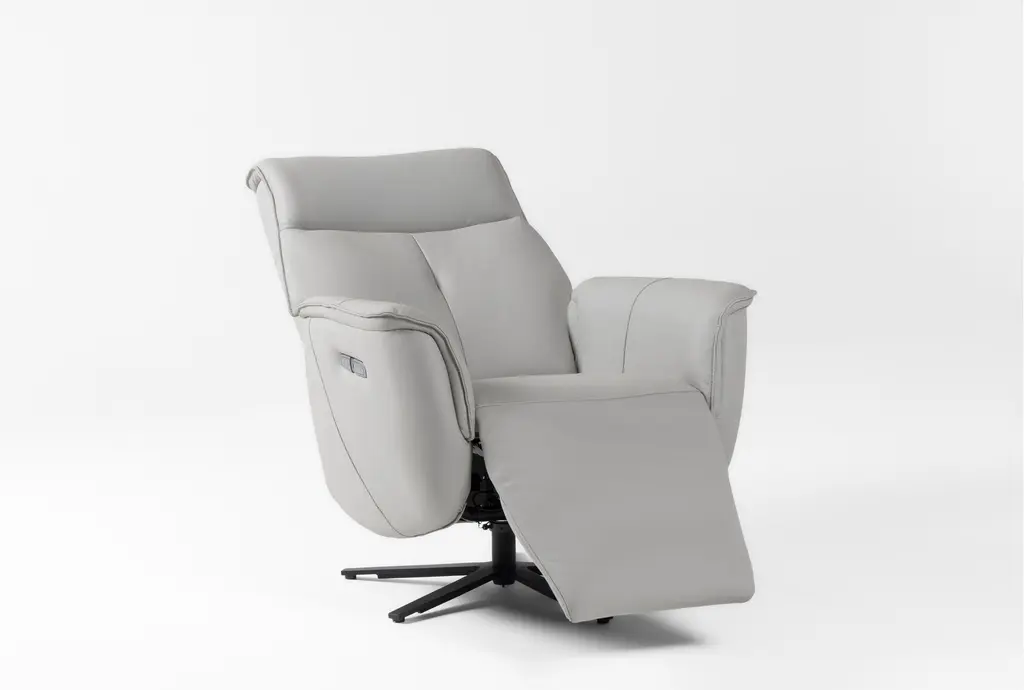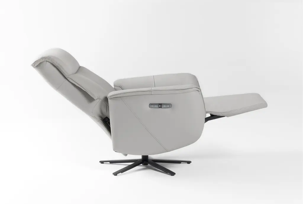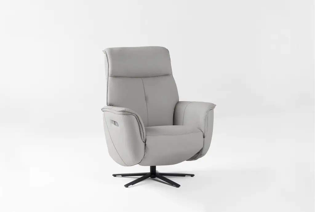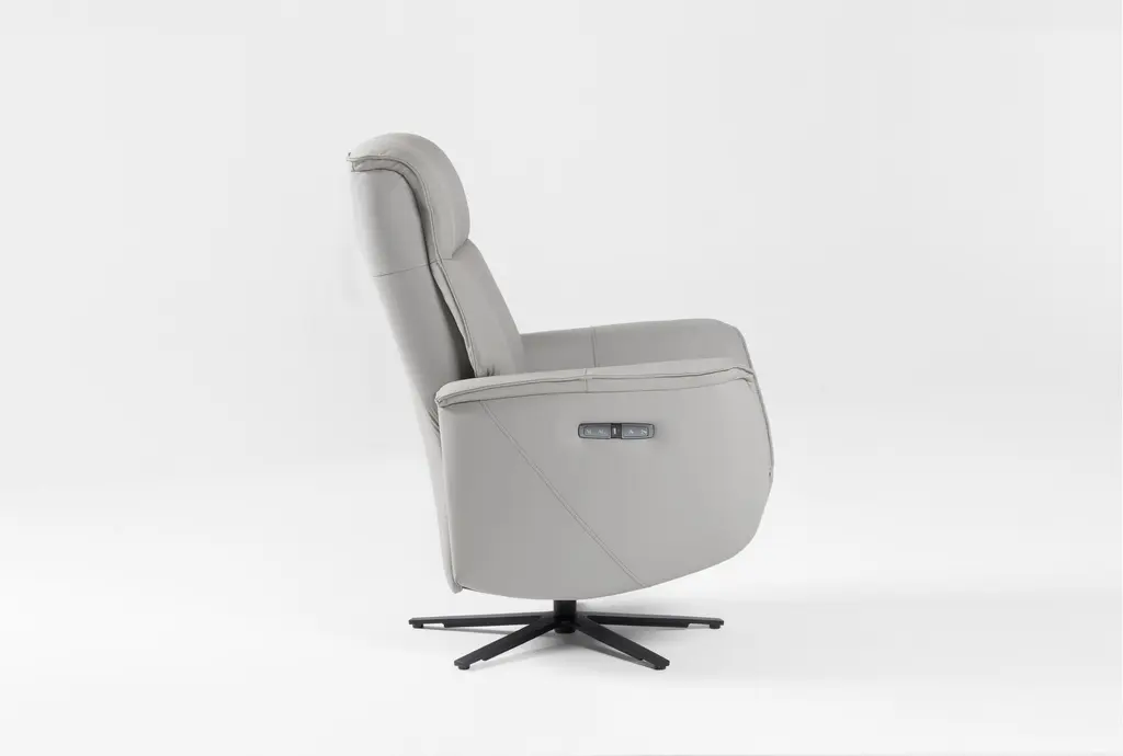 Wright Light Grey Leather 33" Power Swivel Recliner With Usb