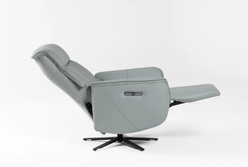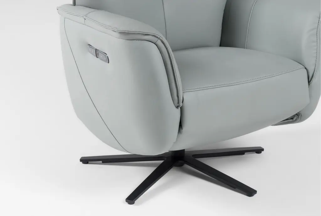 If you're ready to sit solo, our Wright leather power swivel recliner with USB is the place to enjoy alone time. Offering a fresh contemporary design to match its modern amenities, this piece allows you to experience the comforts of easy power reclining and seamless swiveling. Leather seating is a luxe touch you'll love for the look and feel, and USB charging allows you to plug in and power up.