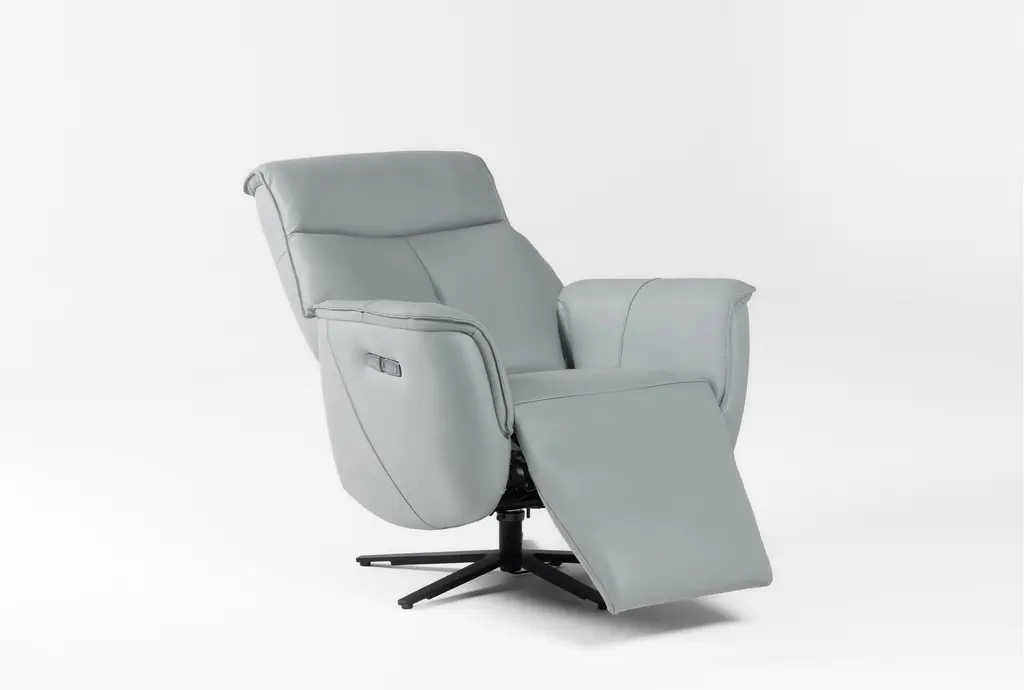 Wright Mint Green Leather 33" Power Swivel Recliner With Usb