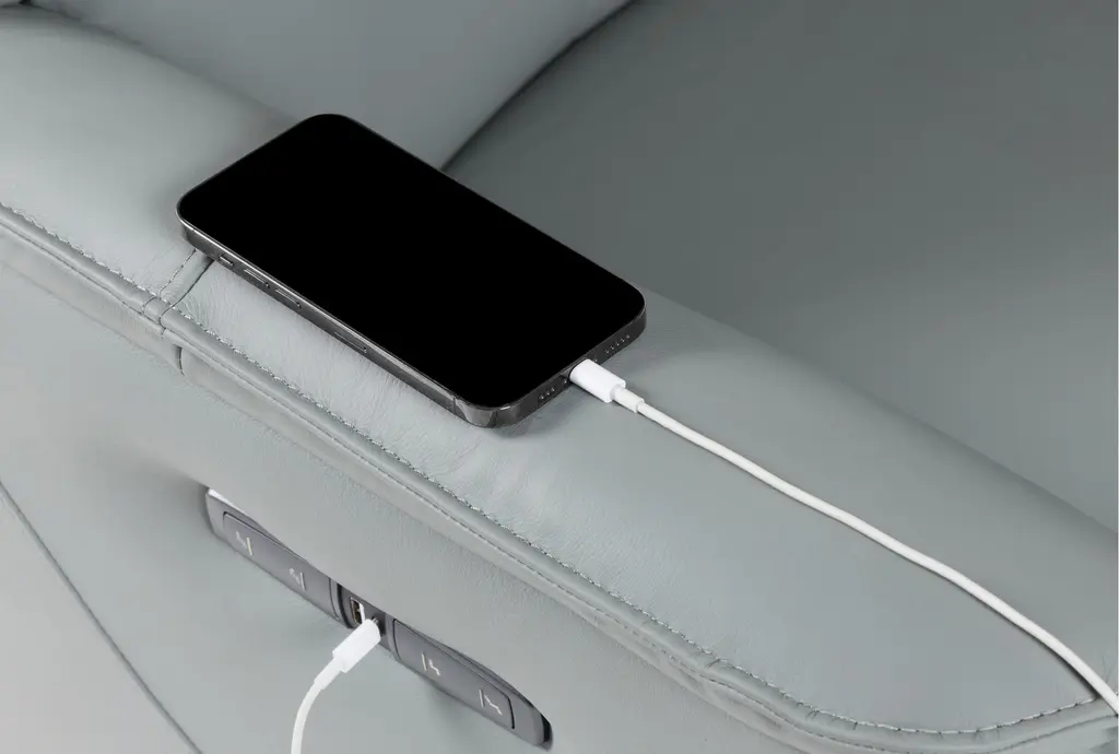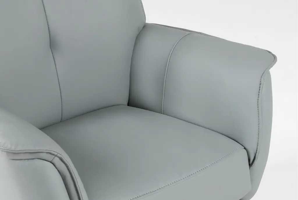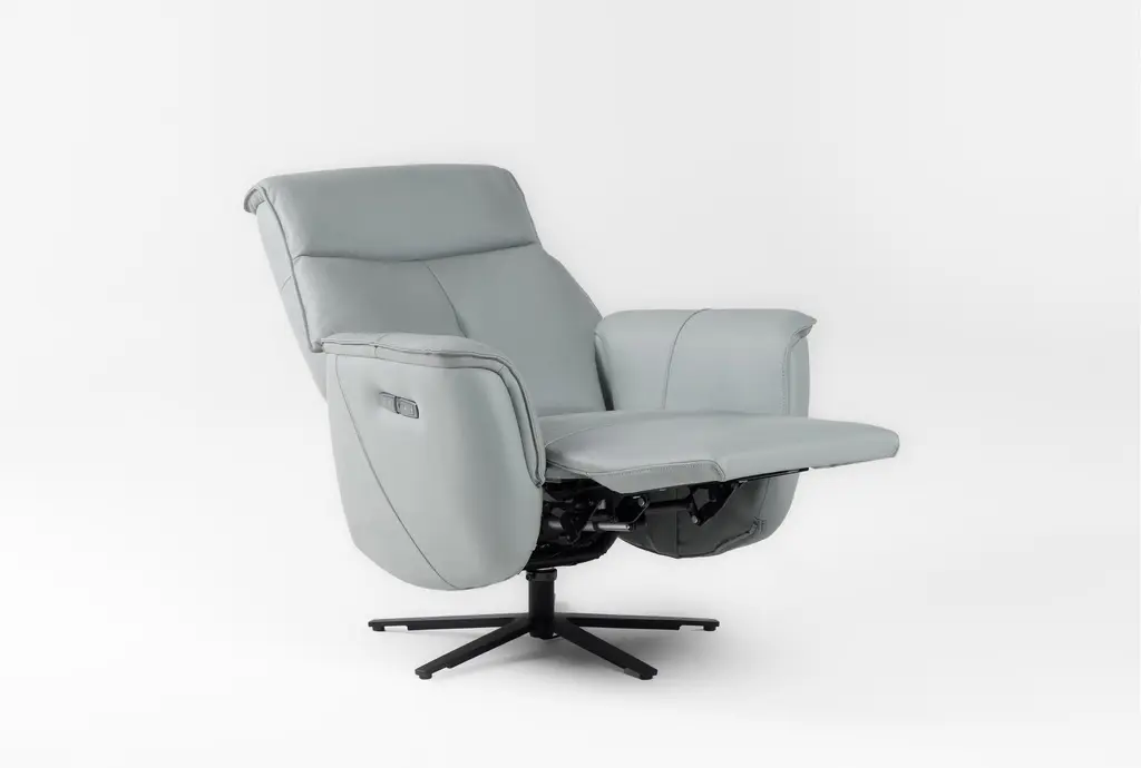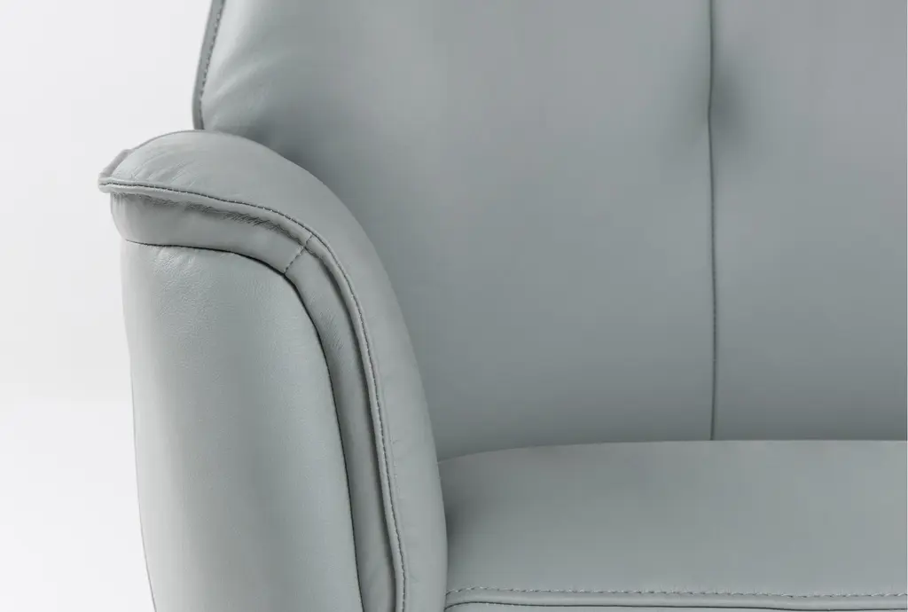 Enhance your living space with the Wright Mint Green Leather 33" Power Swivel Recliner with USB set of 2. These recliners offer both comfort and convenience with their power reclining feature and built-in USB ports. The mint green leather upholstery adds a soft and inviting touch, making them perfect for any living room.