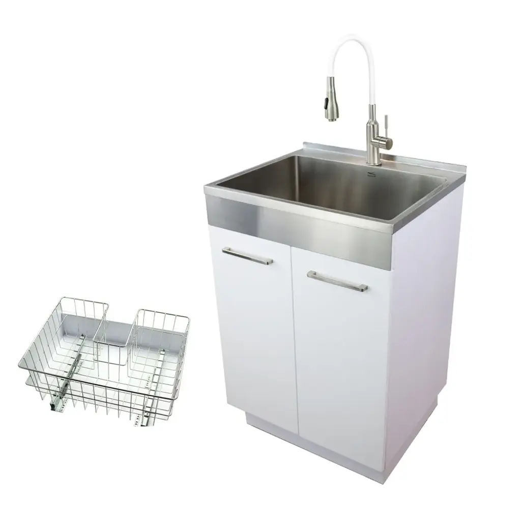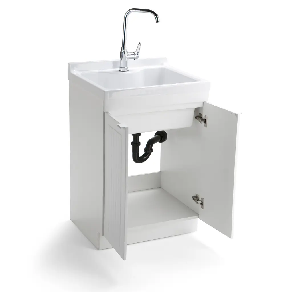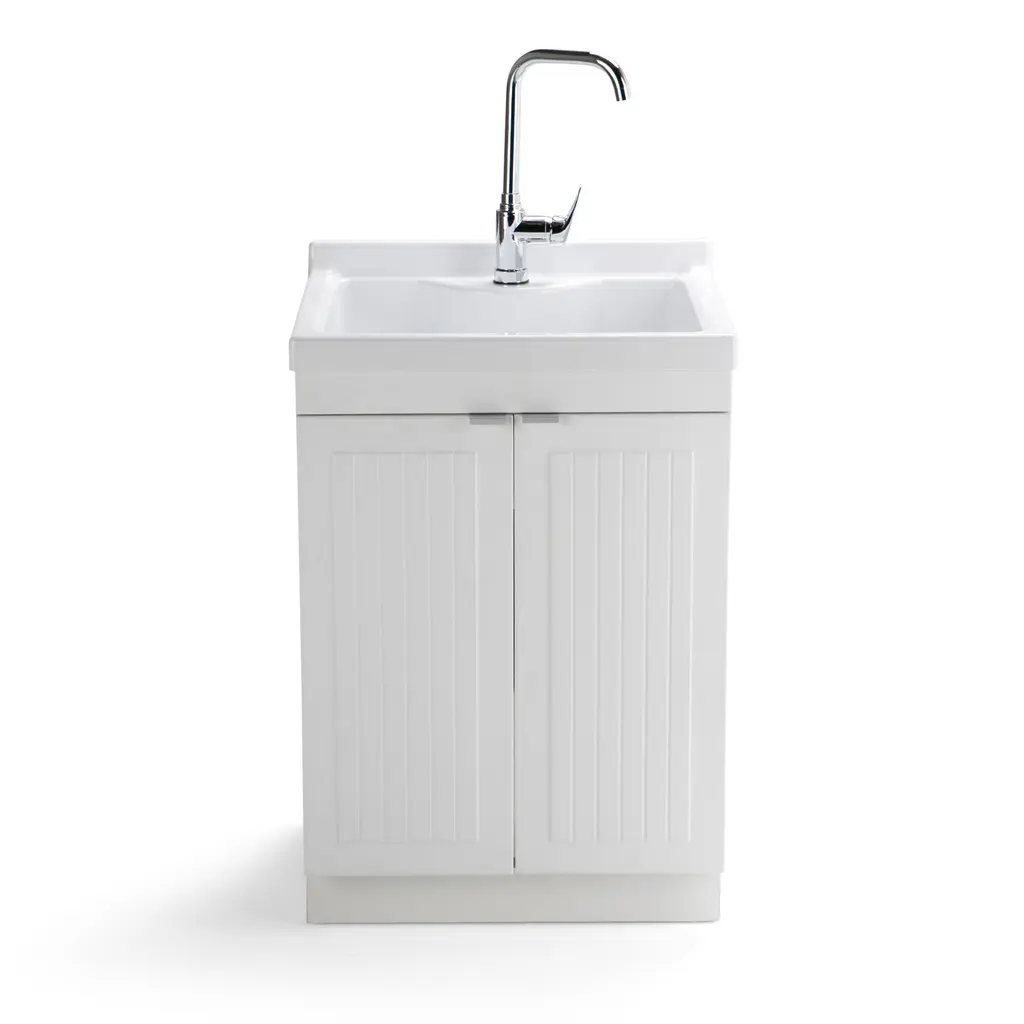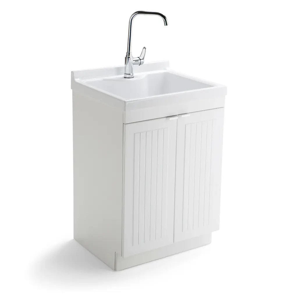 Wyndenhall Bishop Laundry Cabinet With Faucet And Sink - 24'' W X 47.8'' H X 20.5'' D - Pure White